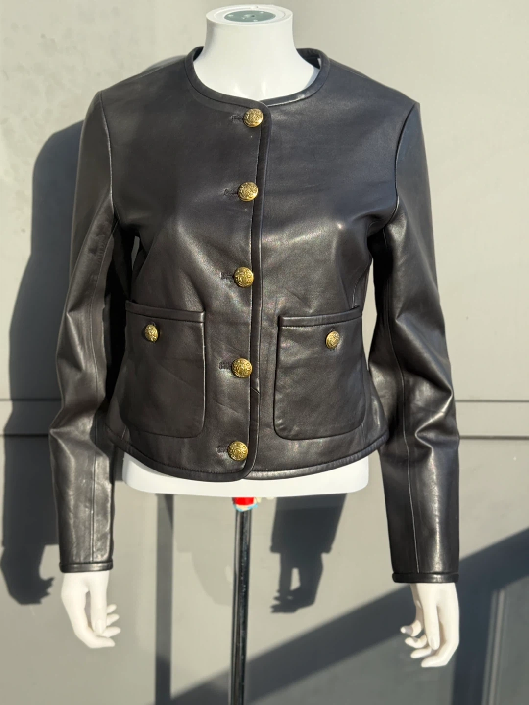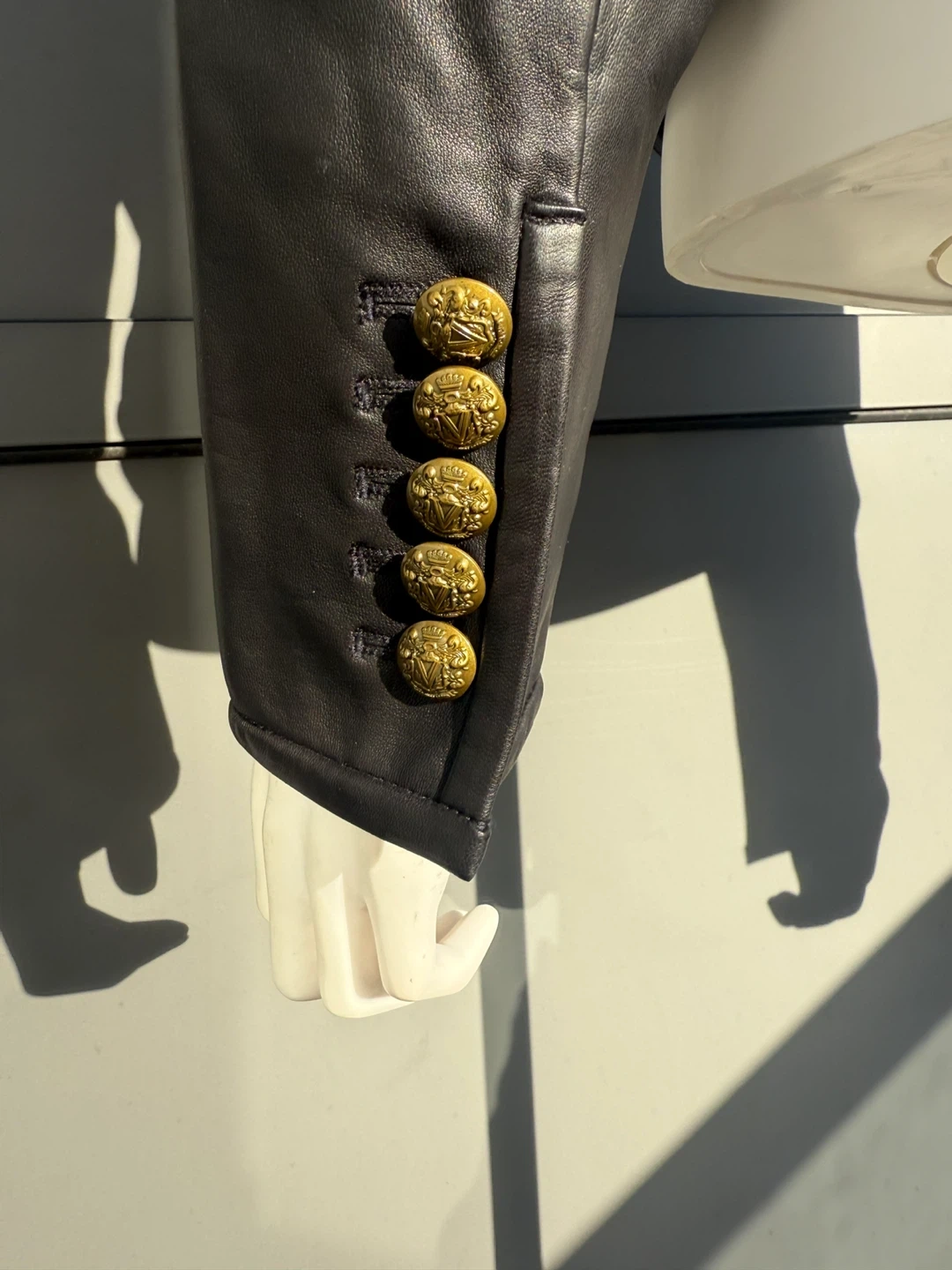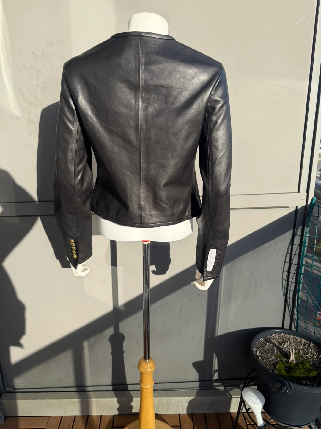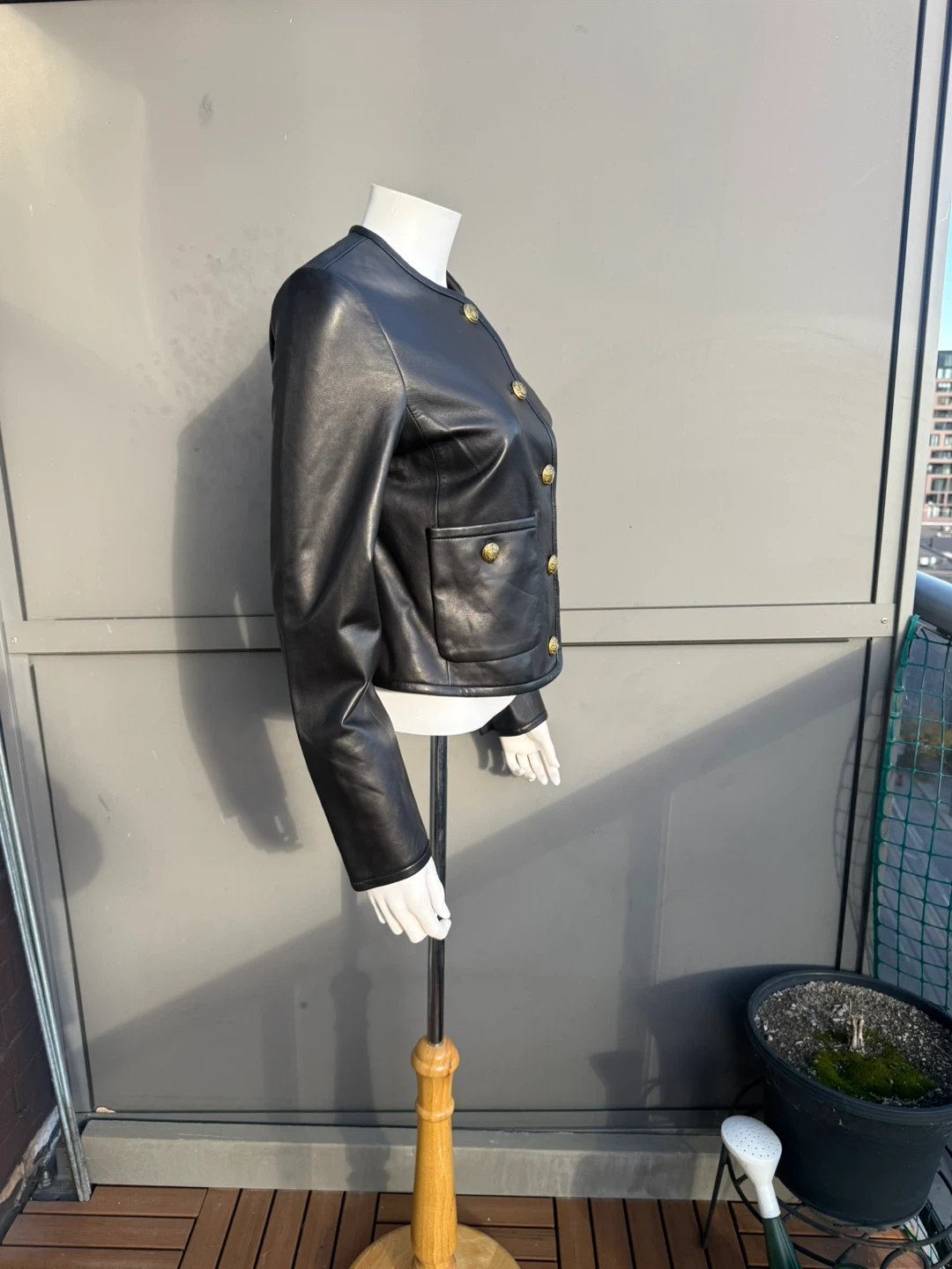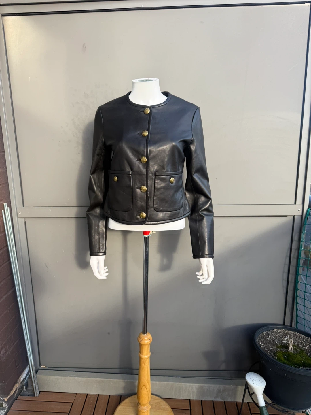 153Selling a stylish Veronica Beard jacket in black leather. This jacket features gold buttons and is a size 2. It's in great condition and ready for a new home! ERP. $1,498.00 FIRM PRICE, Don’t accept any offers on already discounted jacket.