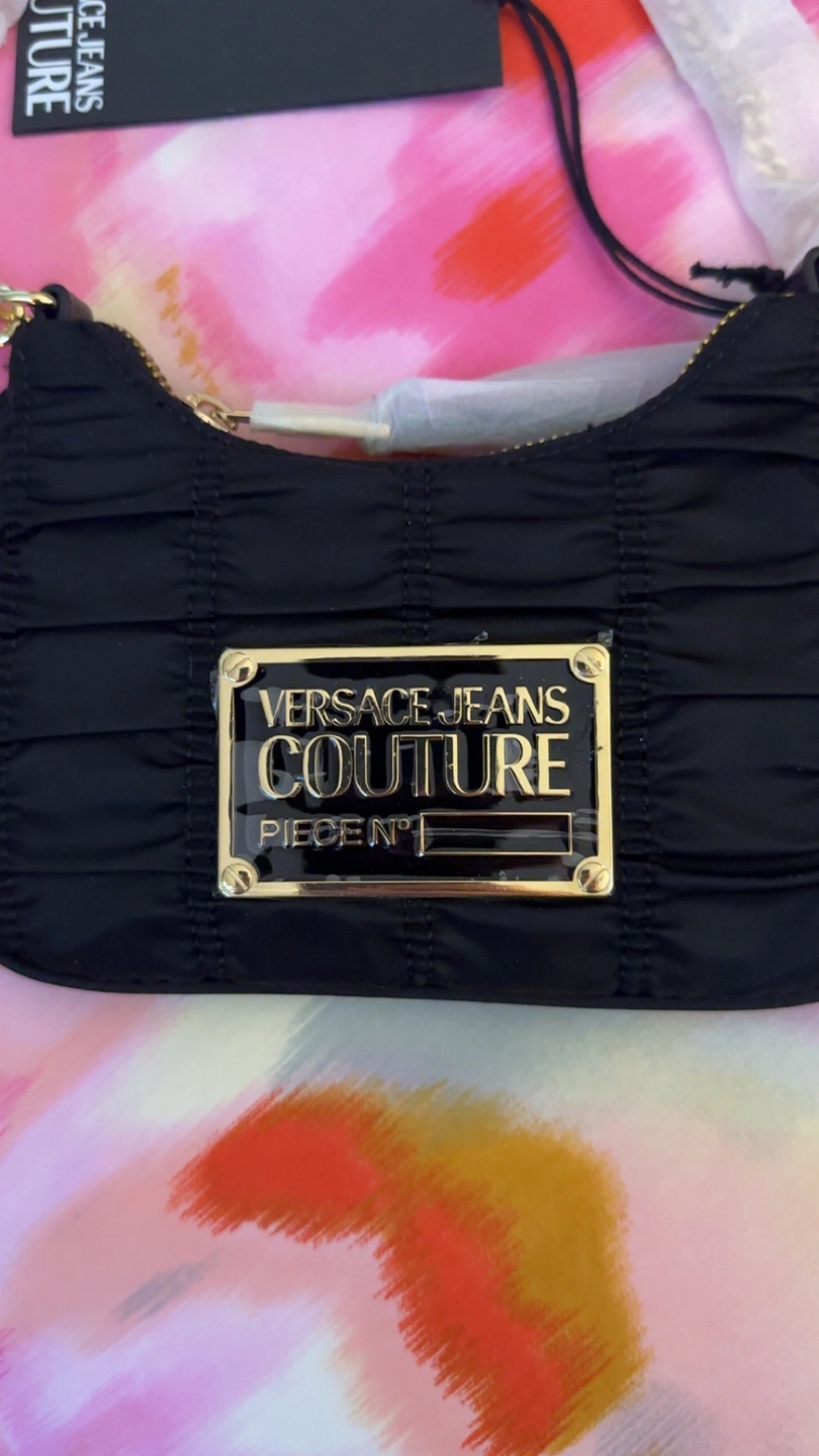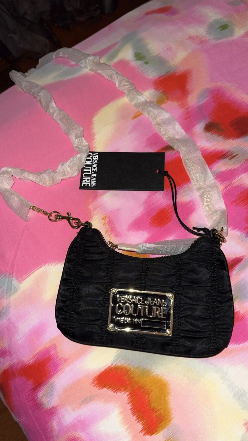 32Black mini bag with gold hardware. Features a chain strap and a Versace Jeans Couture logo. Comes with the original tags.