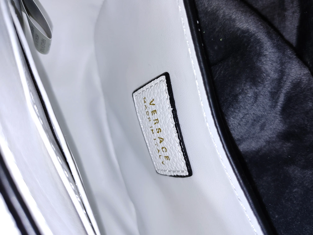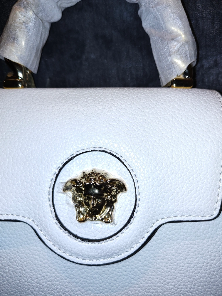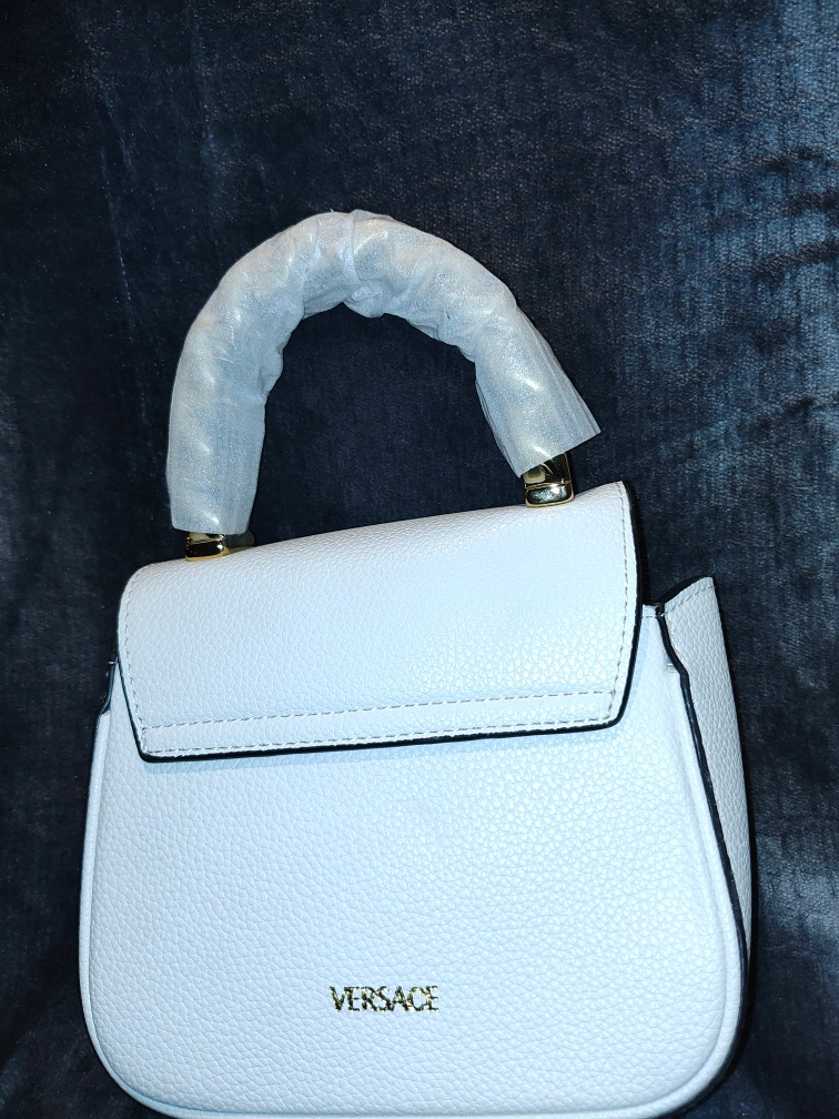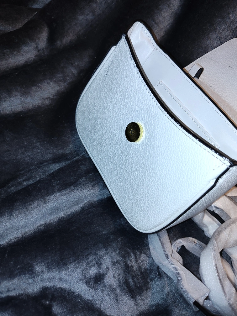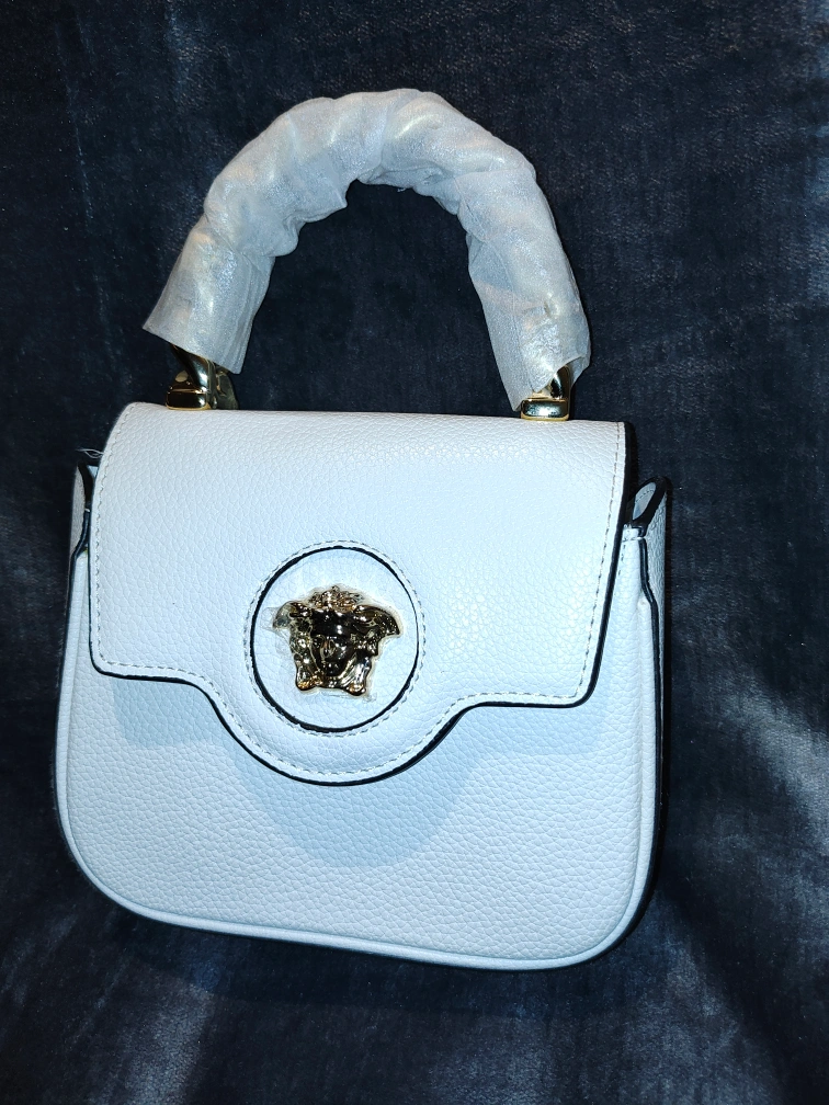 137White mini bag with a gold chain strap and gold hardware. Comes with a dust bag. Brand new.