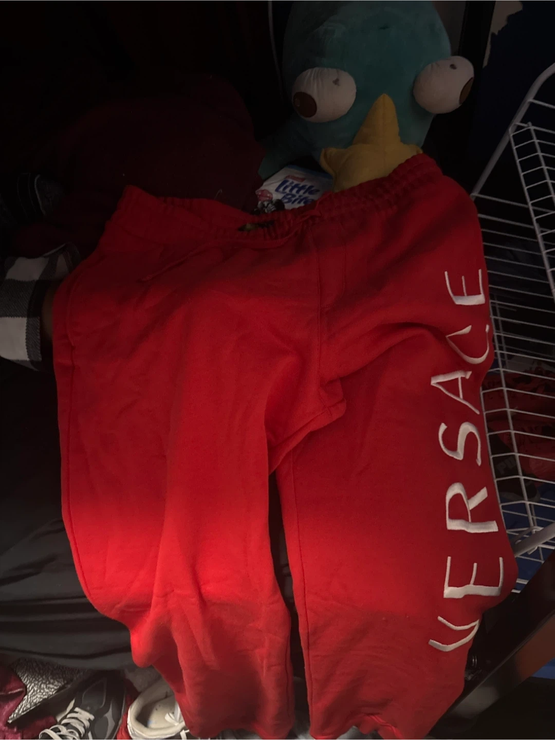 Selling a pair of red Versace joggers. They're in great shape and ready for a new home!