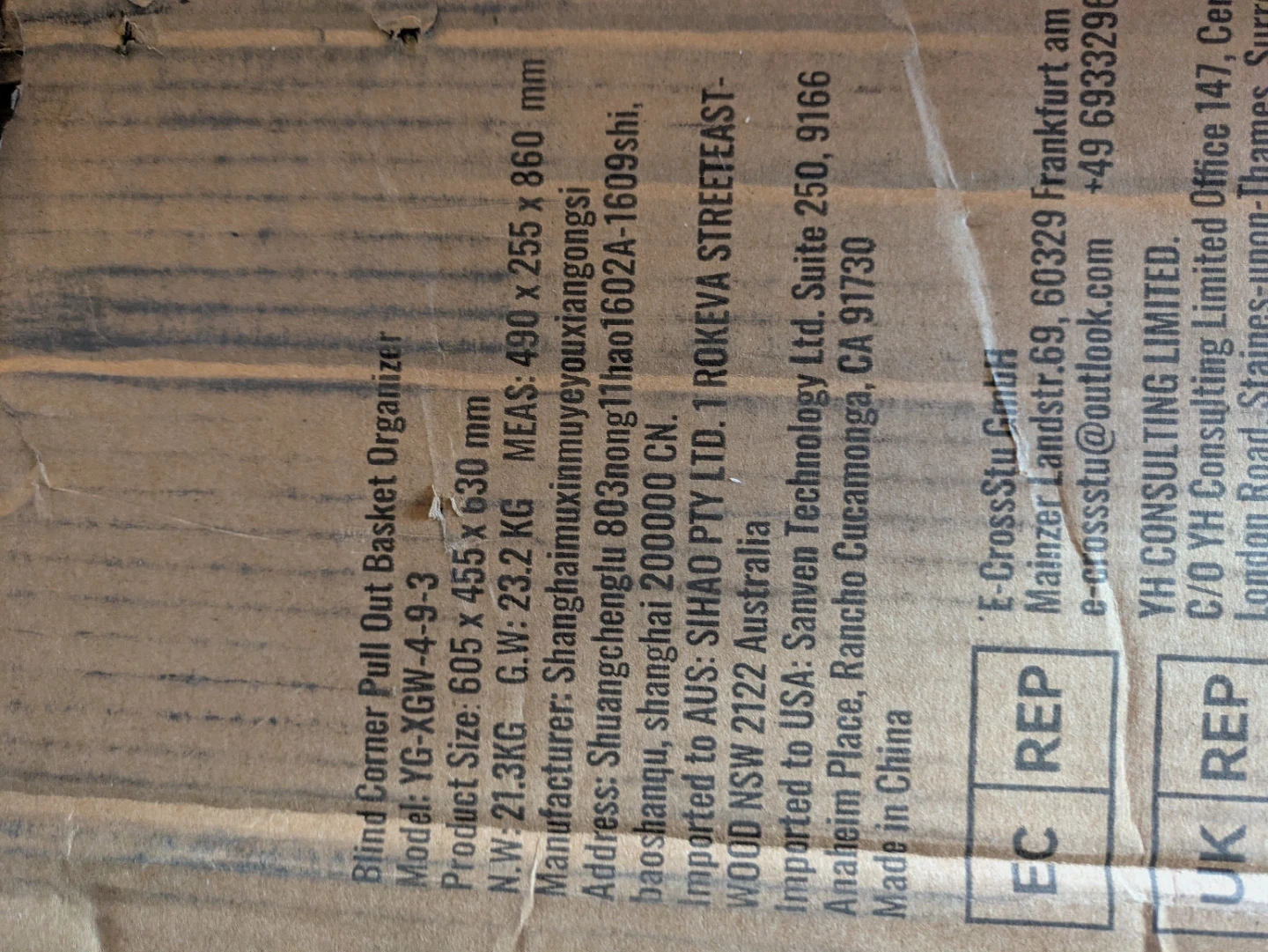 10Selling a VEVOR blind corner pull-out basket organizer. It comes with all the components and is still in its original box! The product size is 605 x 455 x 630 mm. Two sets available
