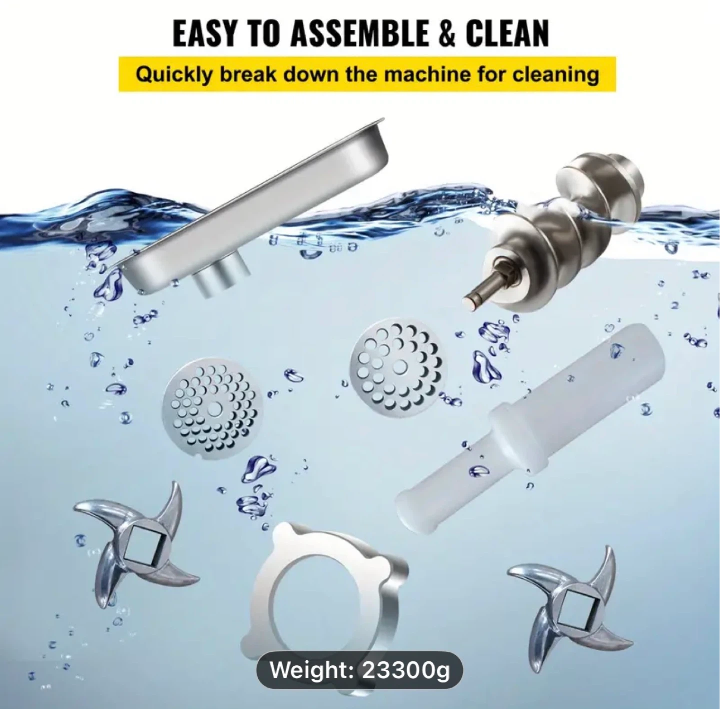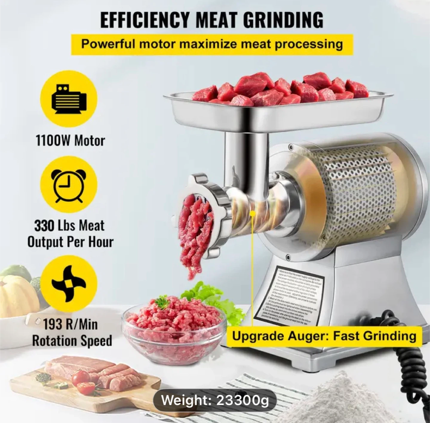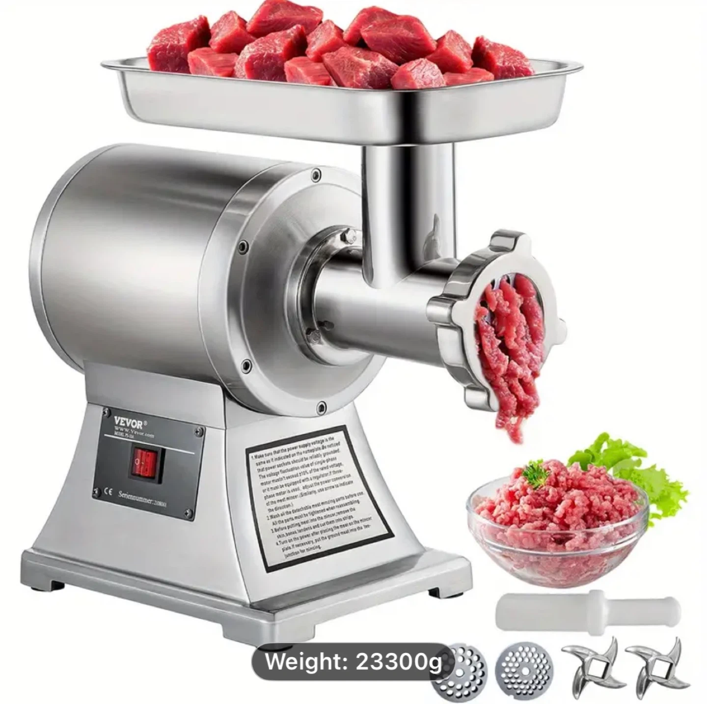 63VEVOR Commercial Meat Grinder, 550LB/h 1100W Electric Meat Grinder, 220 RPM Heavy Duty Stainless Steel Industrial Meat Mincer w/2 Blades, Grinding Plates & Stuffing Tubes
