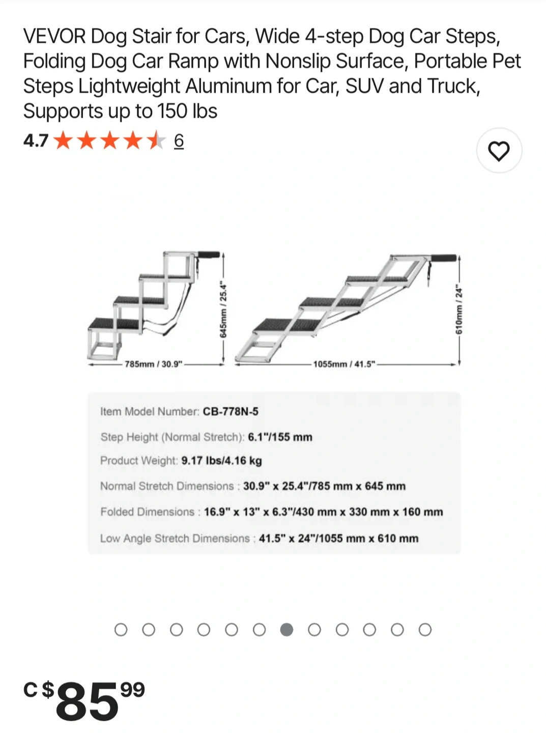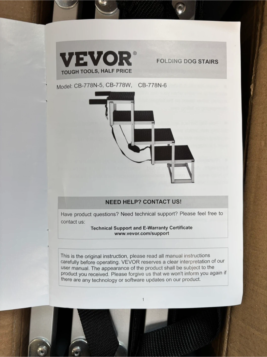 10Selling a brand new Vevor folding dog stairs, still in its original box! The model number is CB-778N-6. It's a great way to help your furry friend reach higher places with ease. Comes with the original instruction manual too