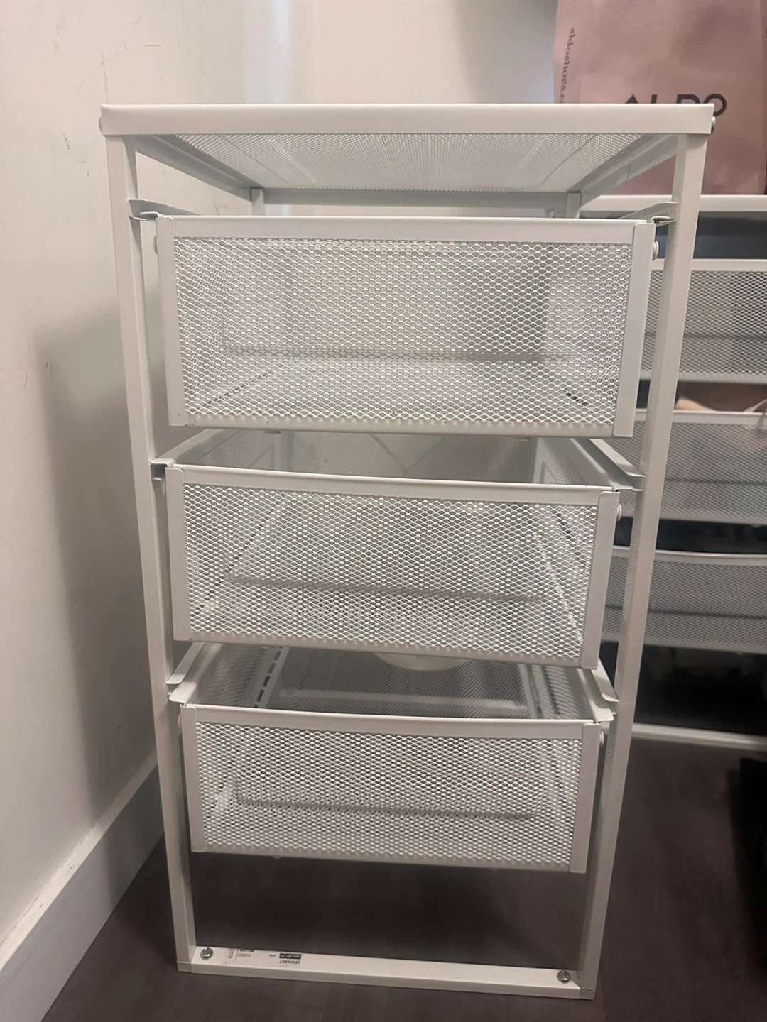 White IKEA LENNART drawer unit. It's a practical storage solution with three mesh drawers. Perfect for organizing small items, craft supplies, or office essentials.