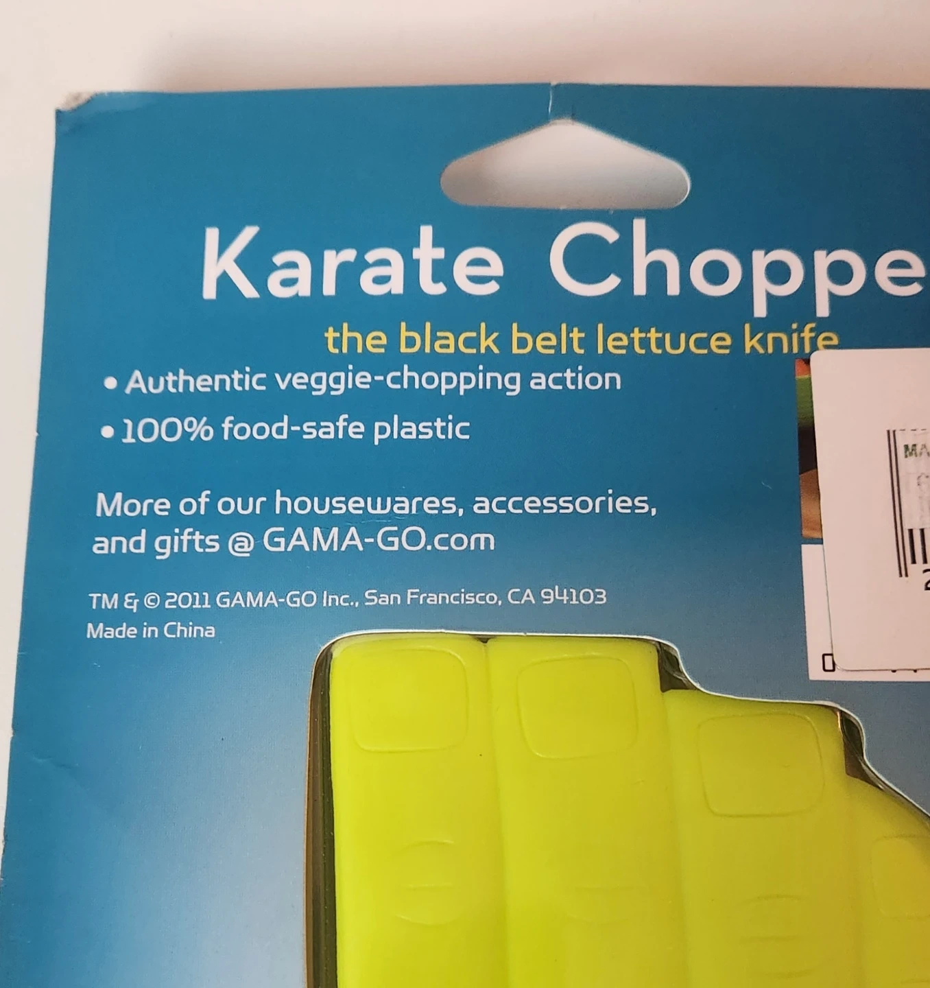 While some karate experts can slice through concrete blocks with one chop, ours has a black belt in lettuce slicing and, being plastic, he’ll leave no brown edges behind.