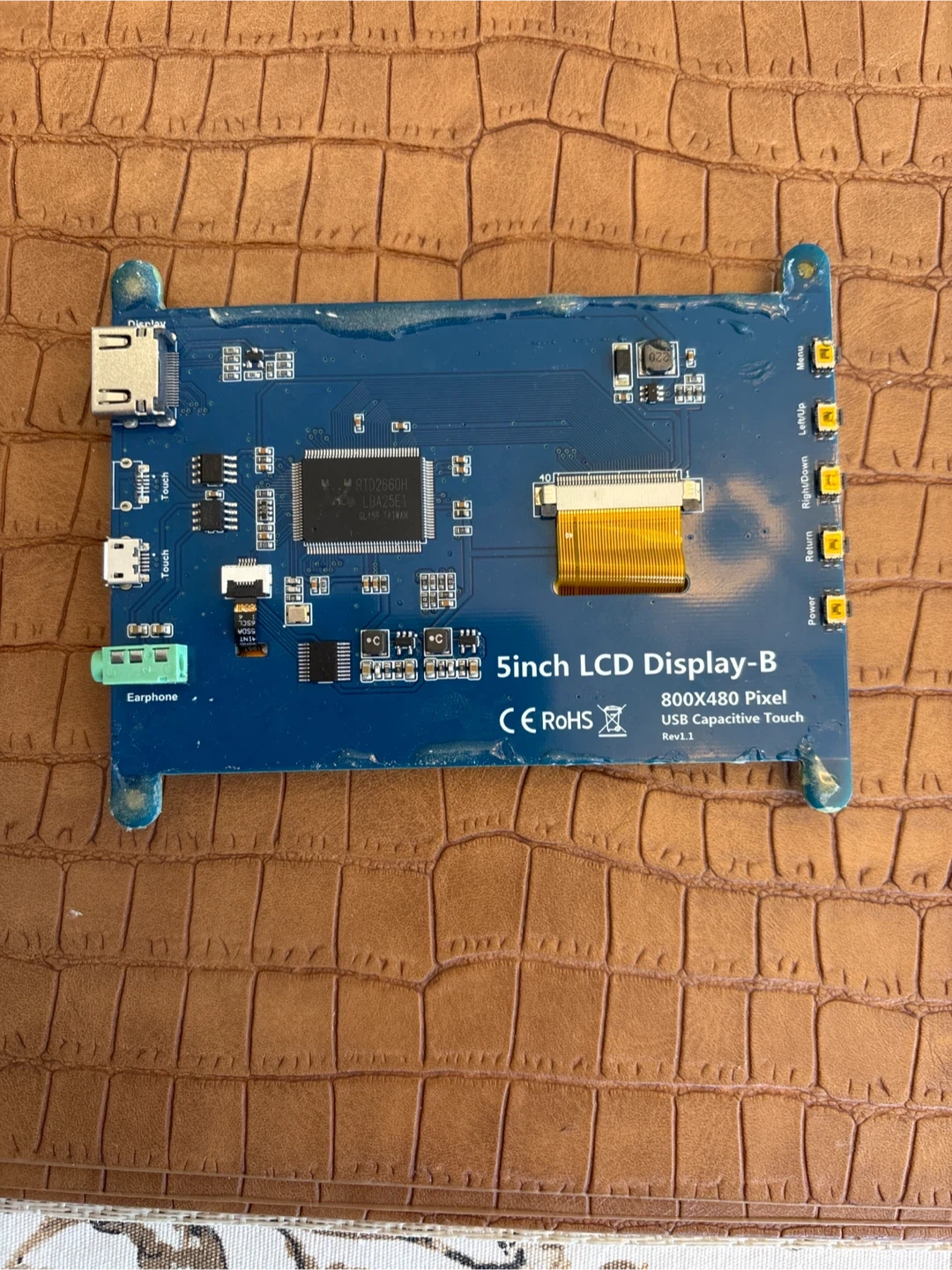 This is a 5-inch LCD display with a resolution of 800x480 pixels. It features USB capacitive touch functionality. It includes the original box and HDMI cable. This display is useful for DIY electronics projects and embedded systems. Single USB port