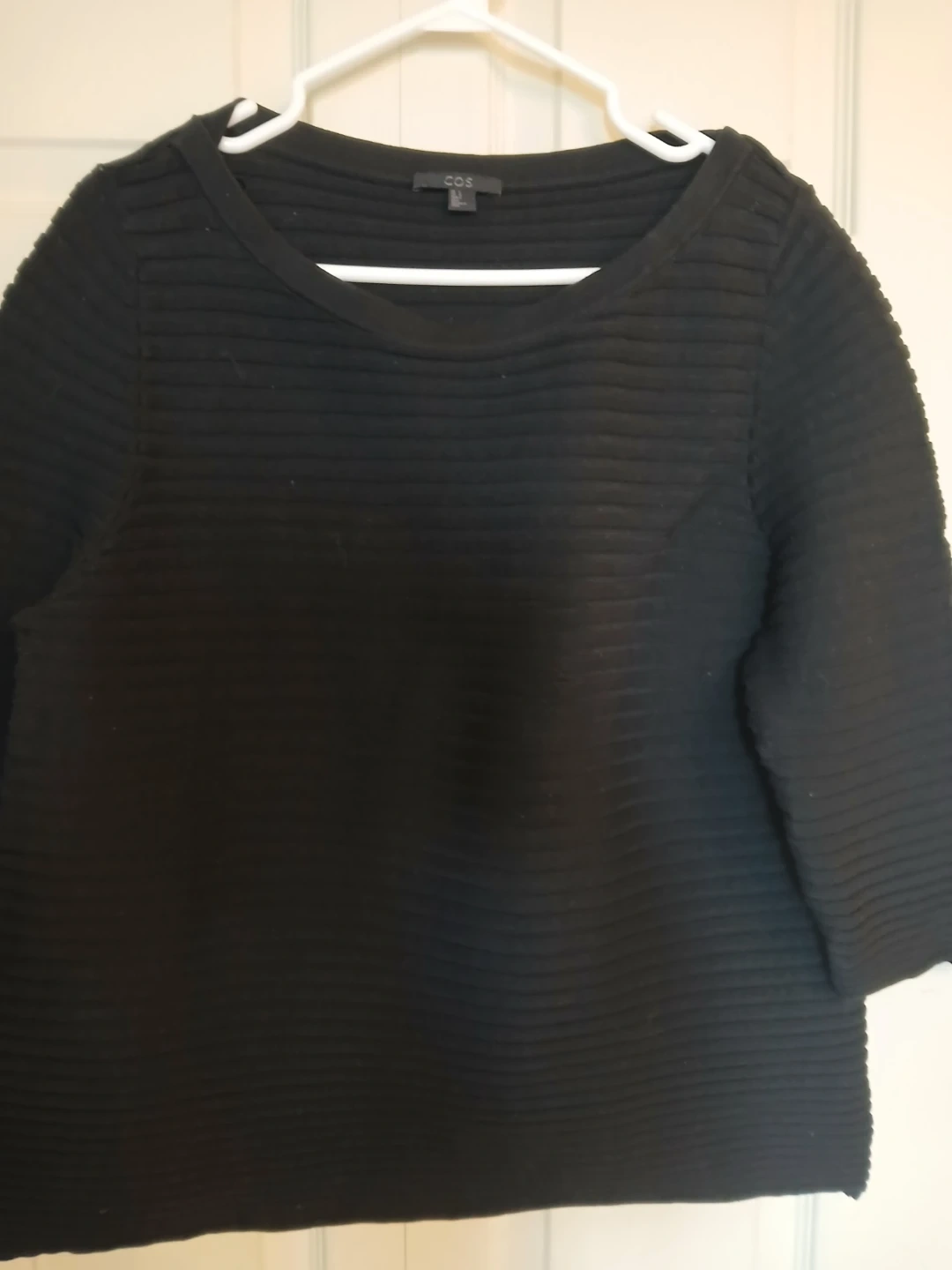 COS cotton black ribbed sweater, size large (L)