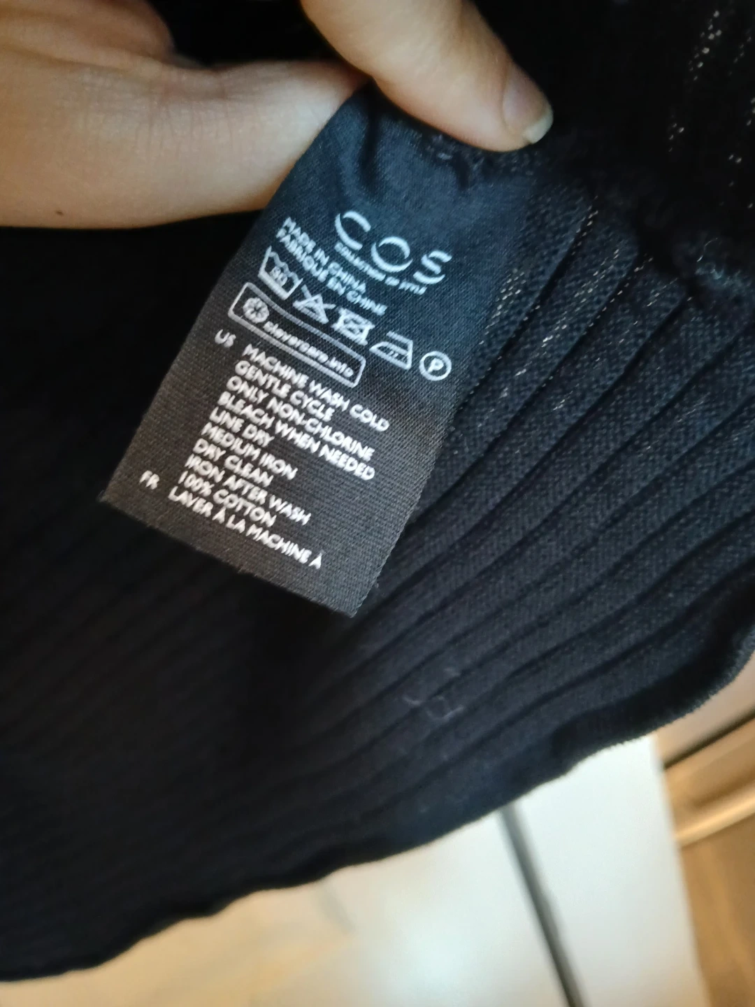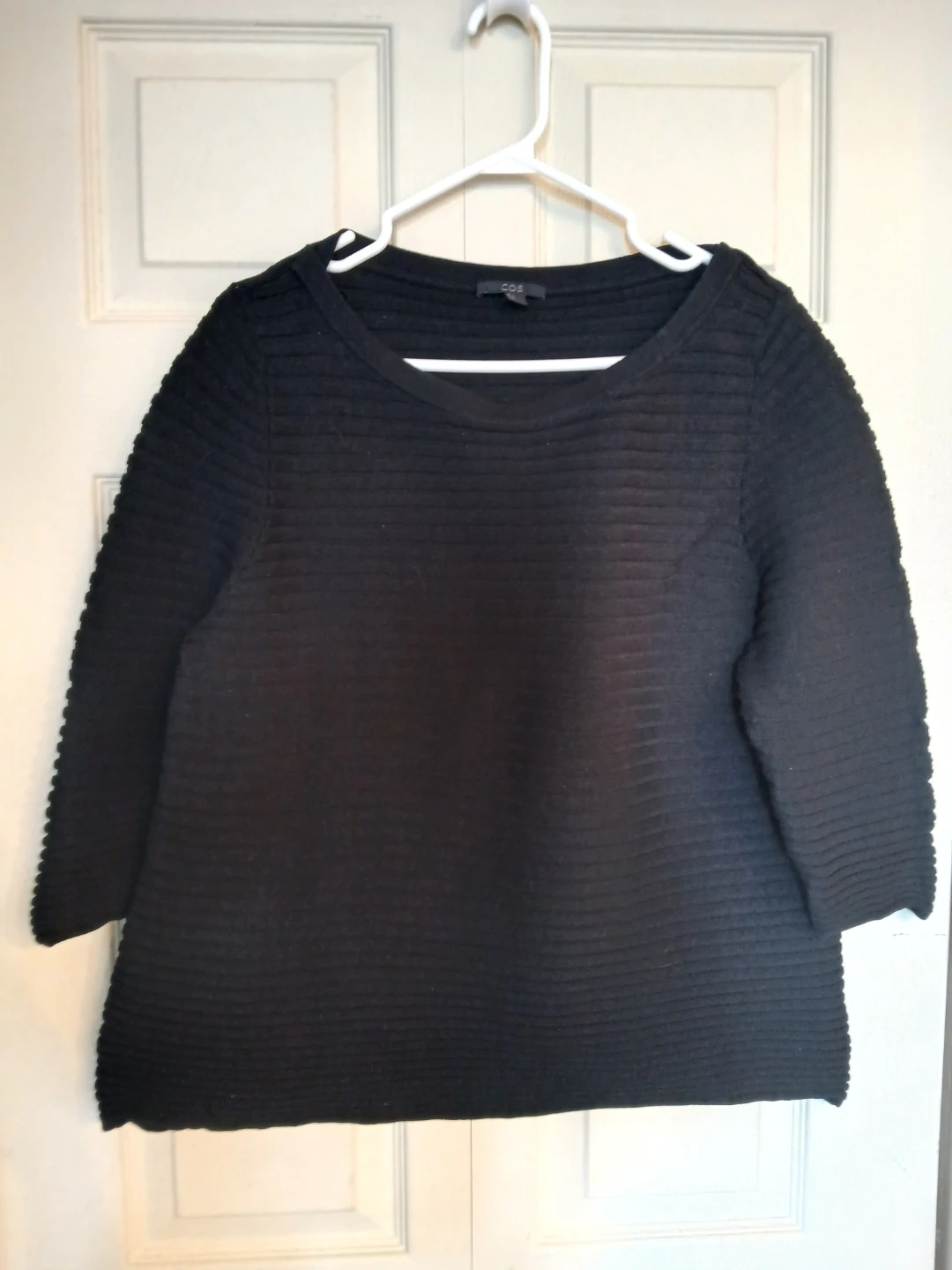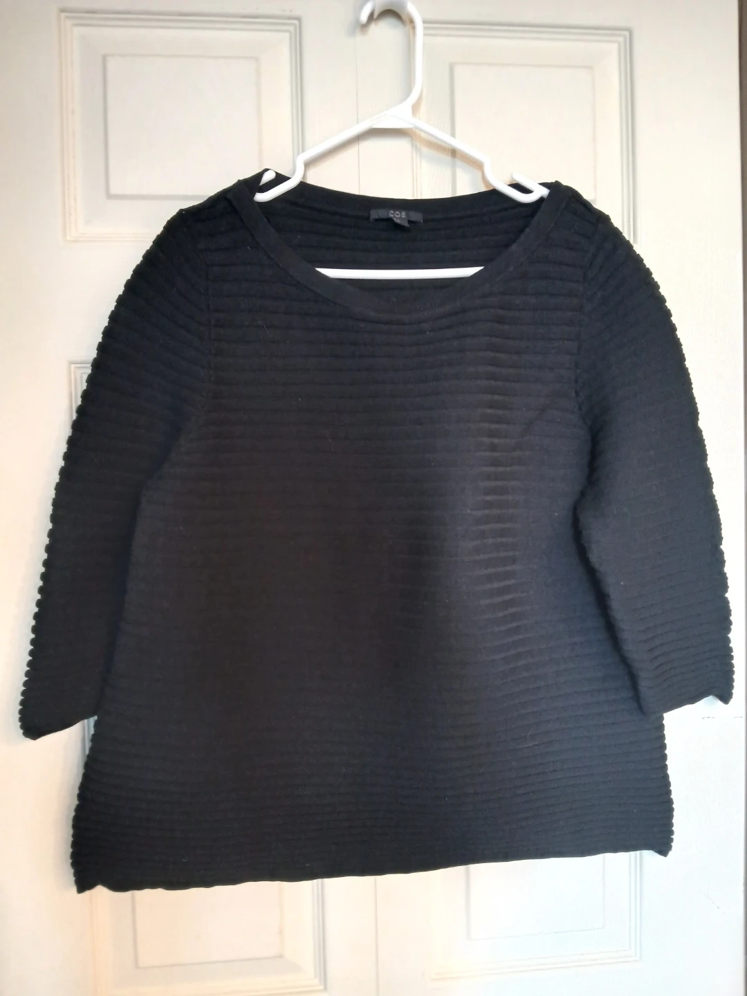 COS cotton black ribbed sweater, size large (L)