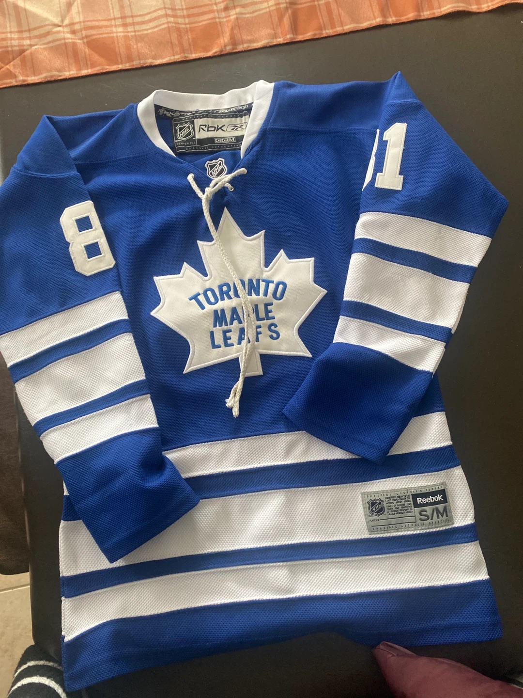 This is a Reebok Toronto Maple Leafs Kessel #81 hockey jersey. It's a size S/M. Officially licensed by the NHL.
