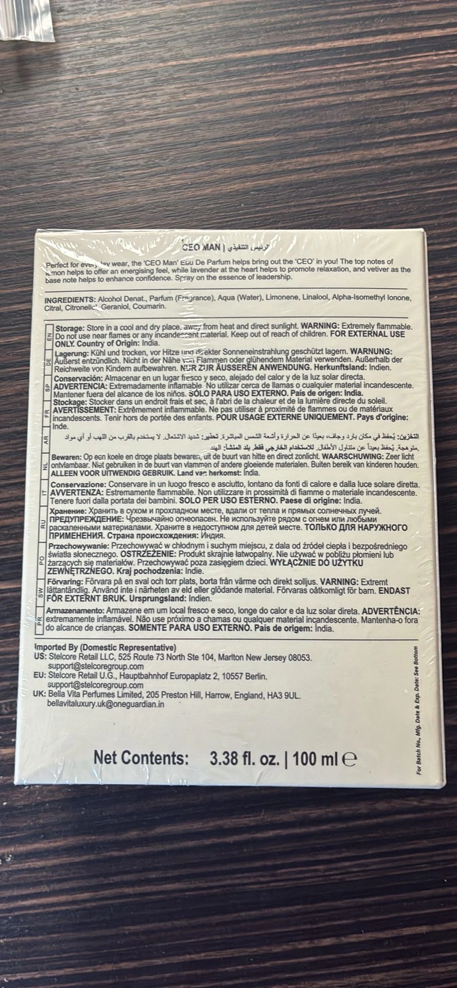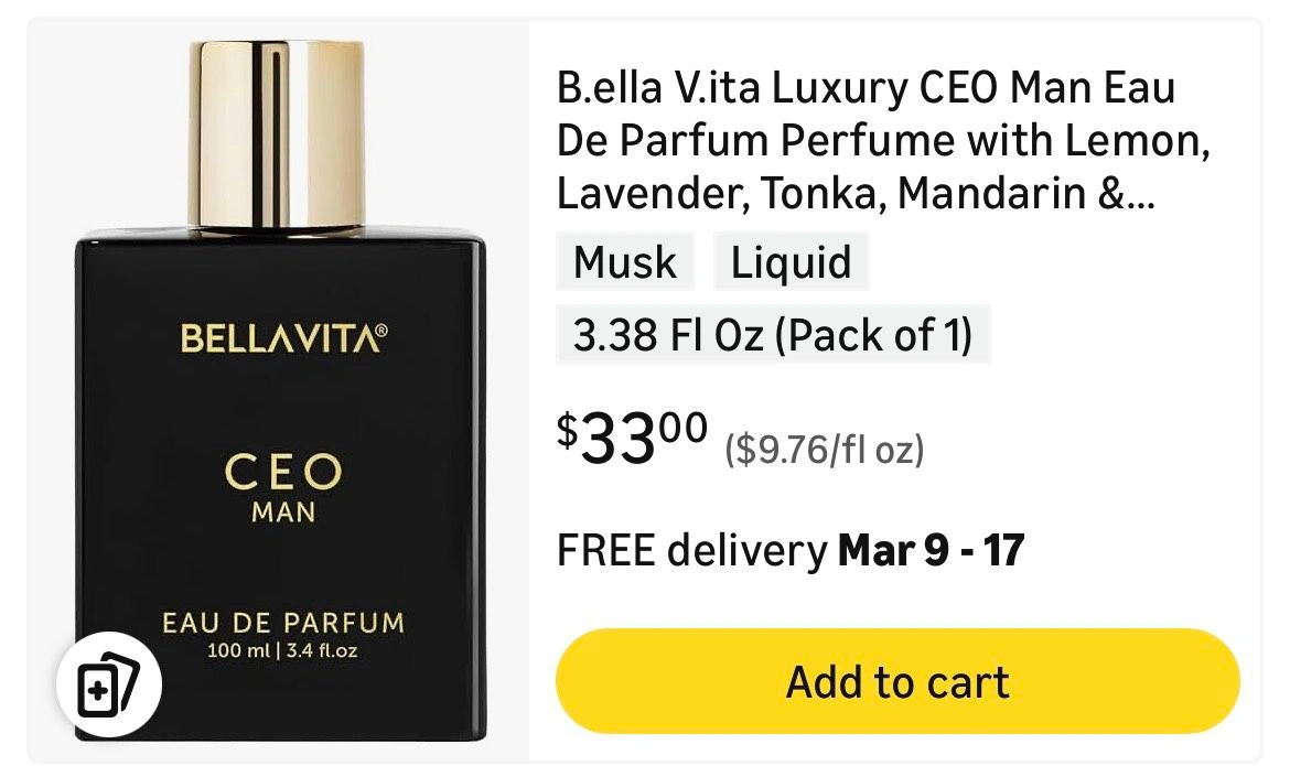B.ella V.ita Luxury CEO Man Eau De Parfum for Men. Premium, long-lasting woody fragrance with notes of Lemon, Lavender, Tonka, Mandarin & Vetiver. 100 ML.