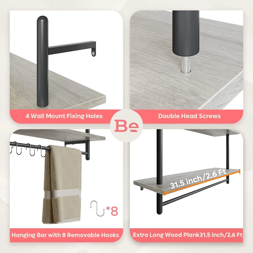 2-Tier Wall Shelf with Hanging Bar