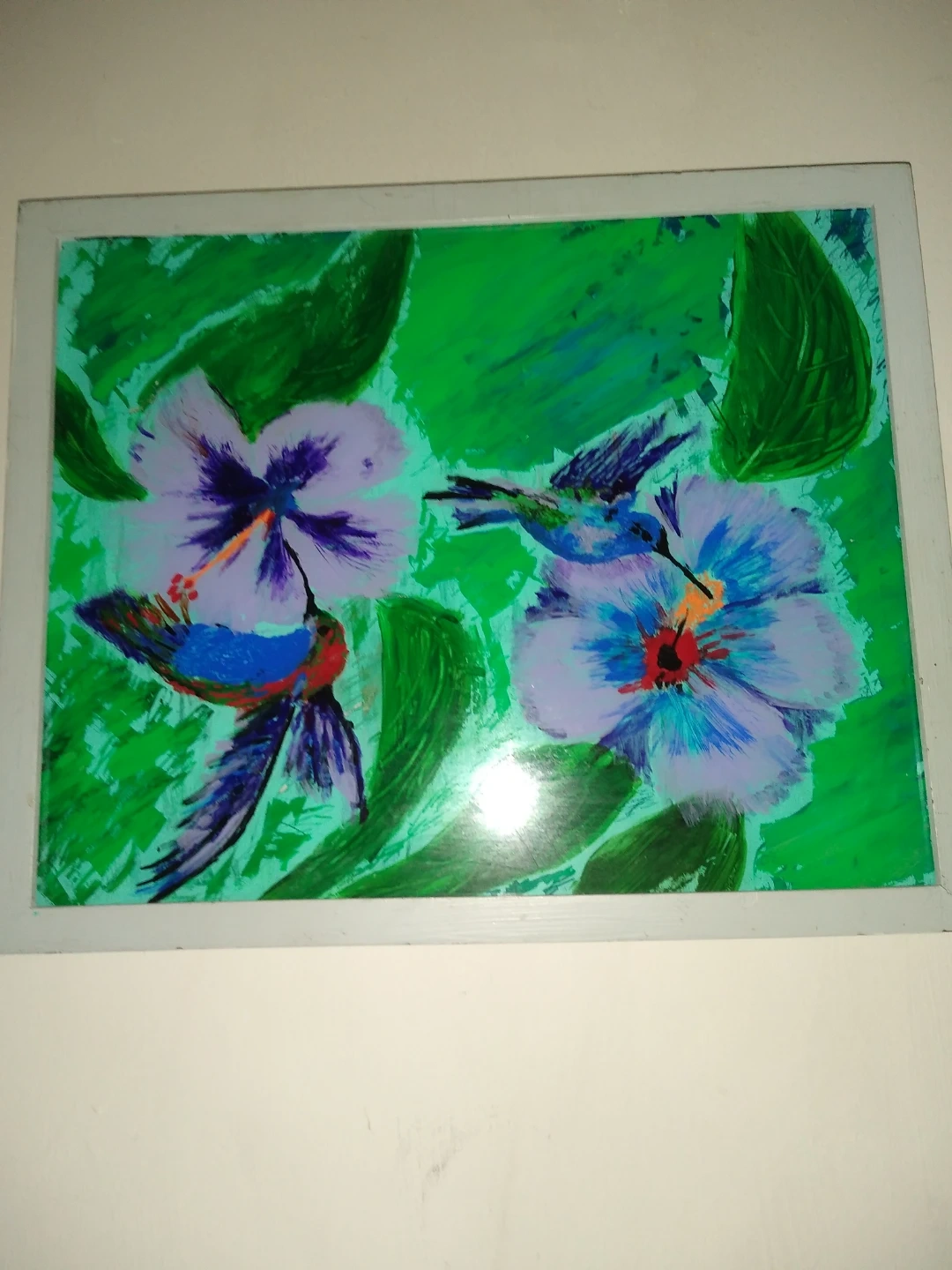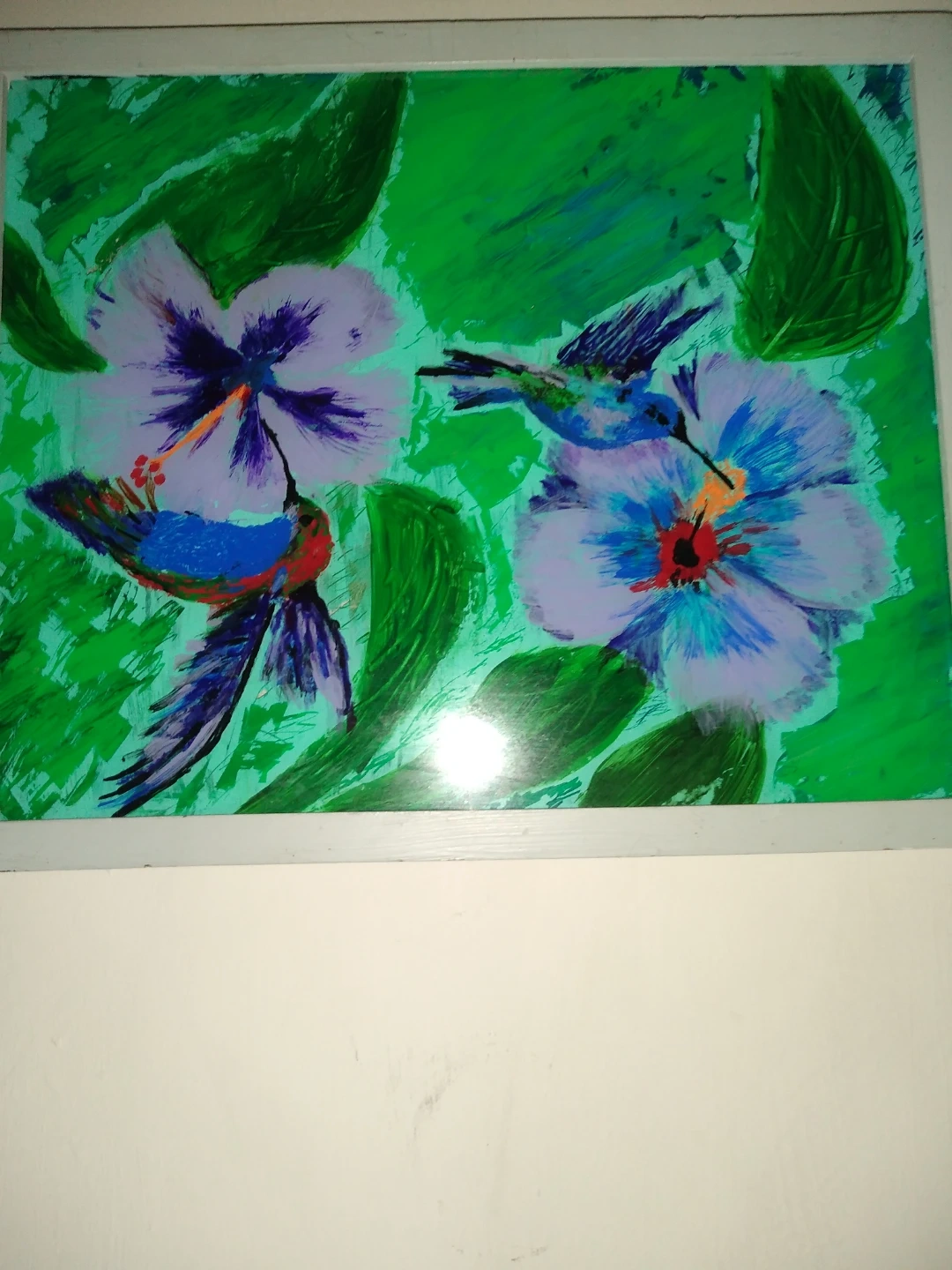 This is a one-of-a-kind original artwork by the artist of two hibiscus and two hummingbirds it's incredibly beautiful and definitely one of a kind.