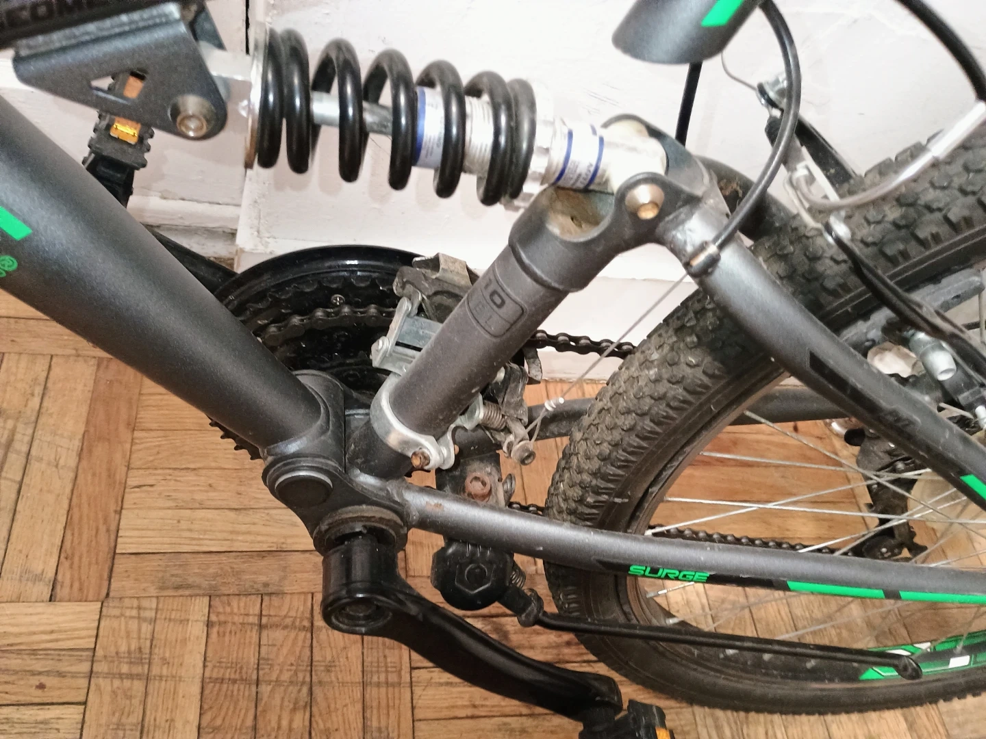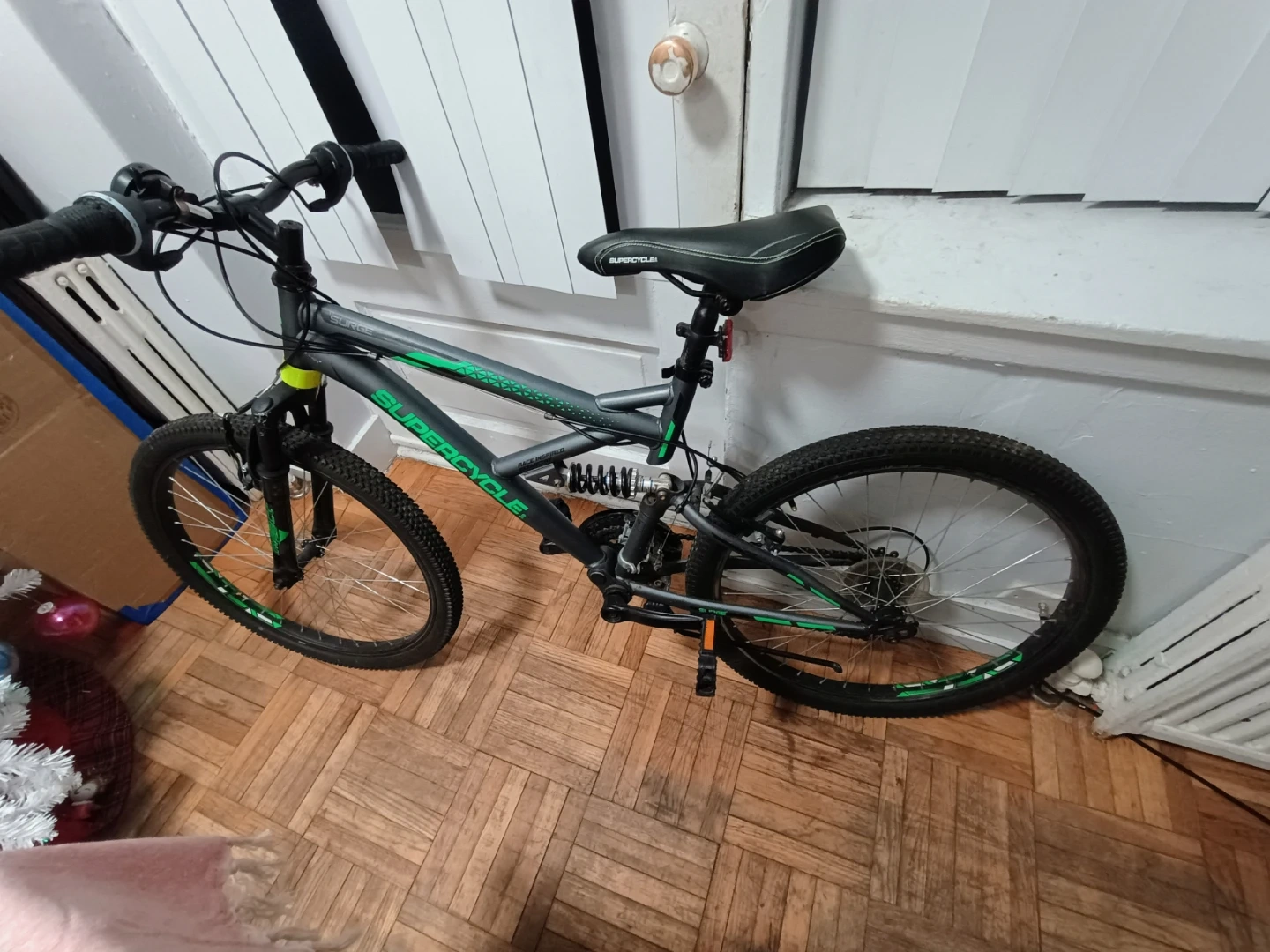I'm selling this used Supercycle bicycle in normal condition; the brakes and suspension work perfectly, but the gears need checking