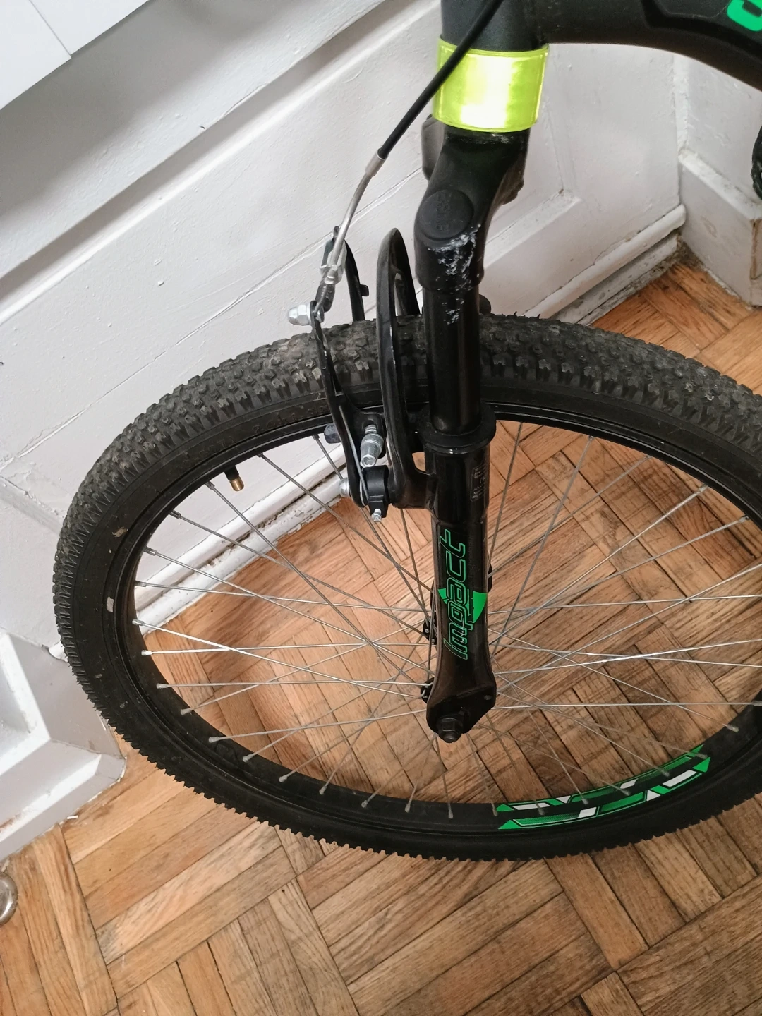 I'm selling this used Supercycle bicycle in normal condition; the brakes and suspension work perfectly, but the gears need checking