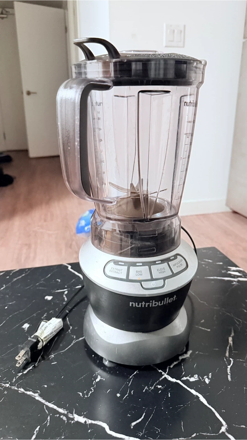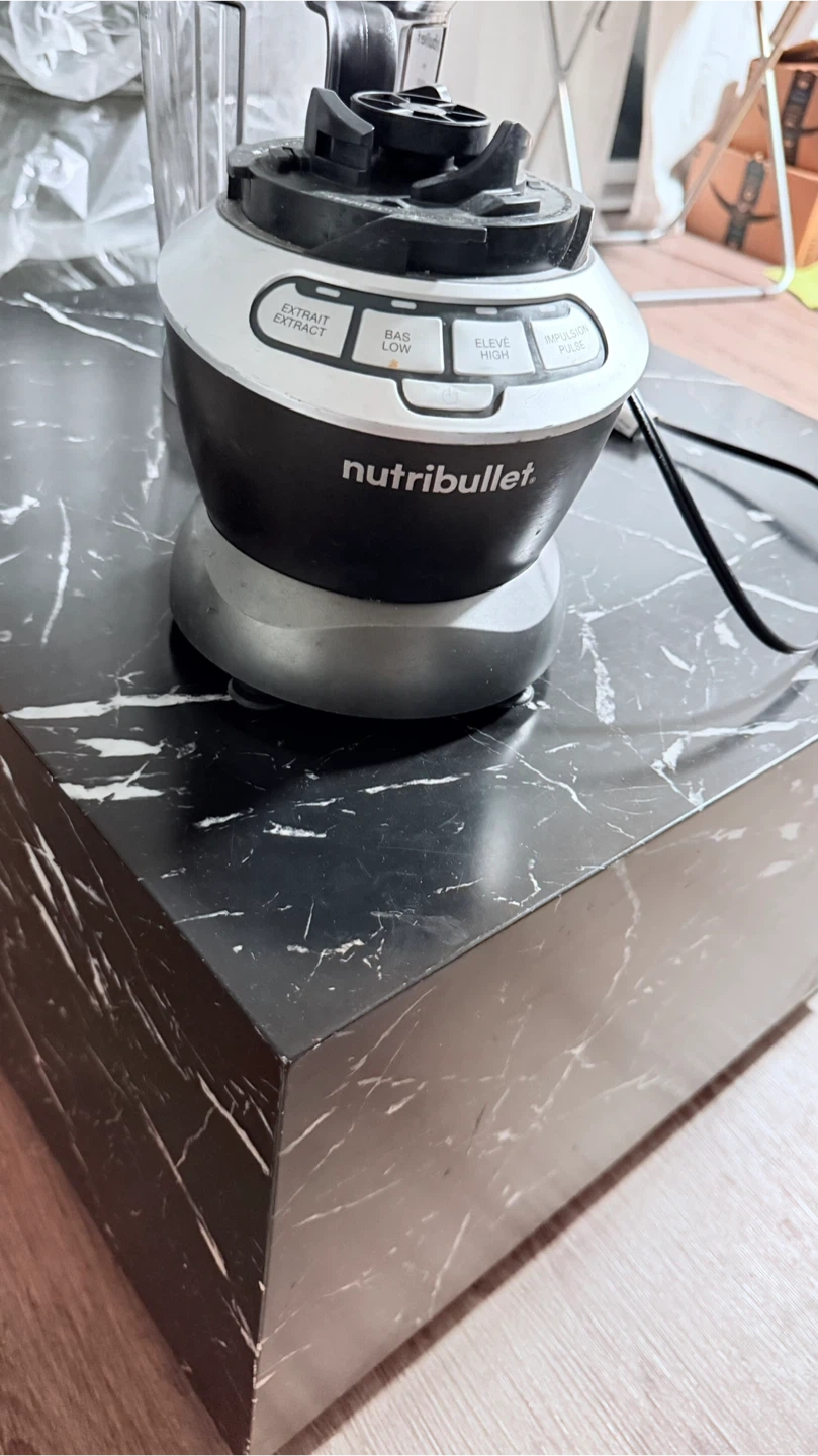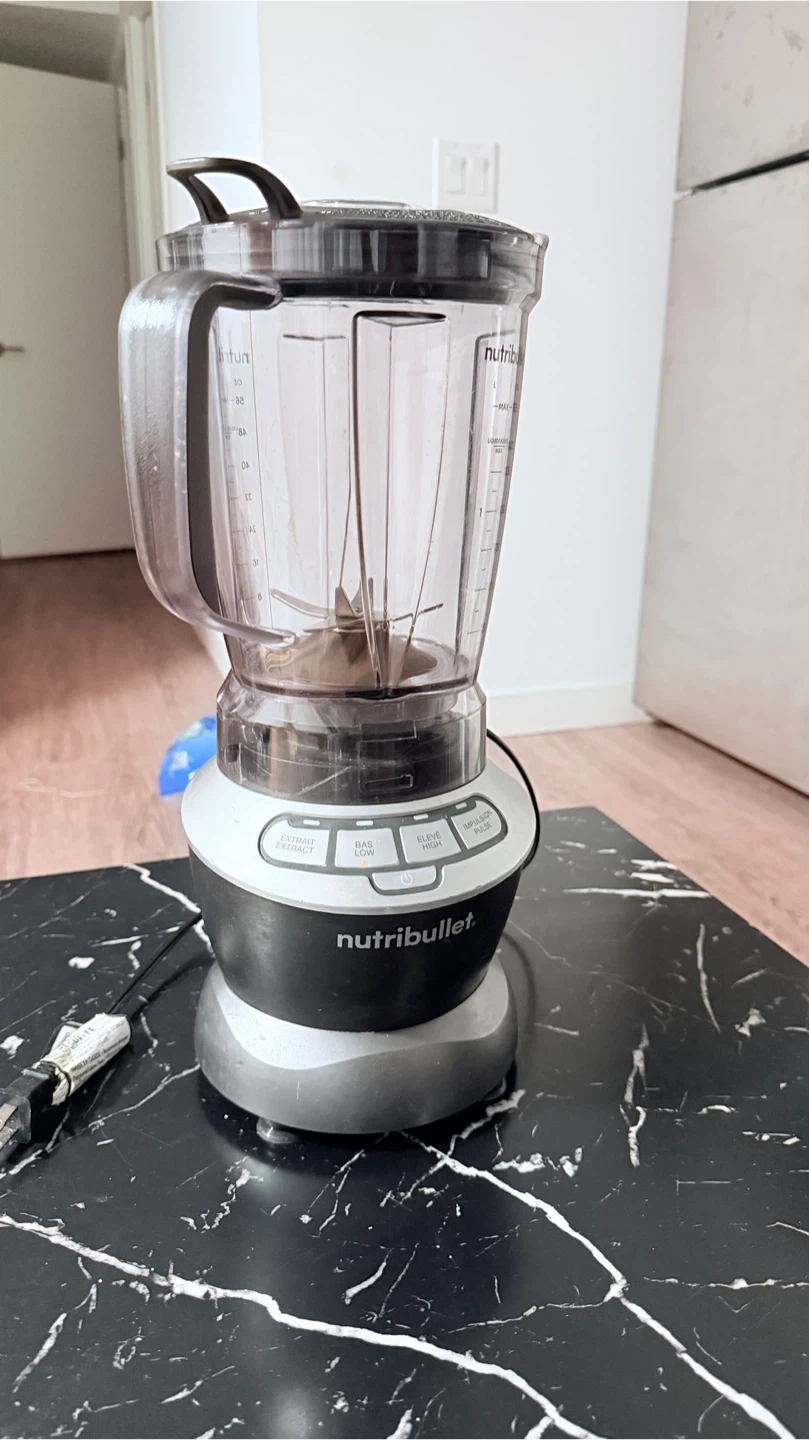 This NutriBullet blender is in good condition. It's made of durable plastic and has multiple speed settings for various needs. It's a great appliance for smoothies and other blended drinks!