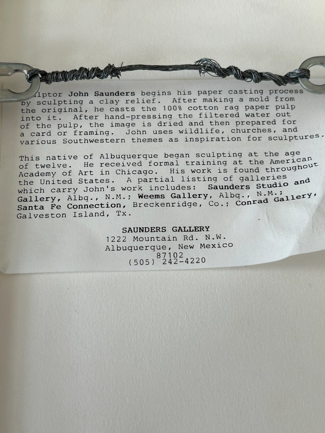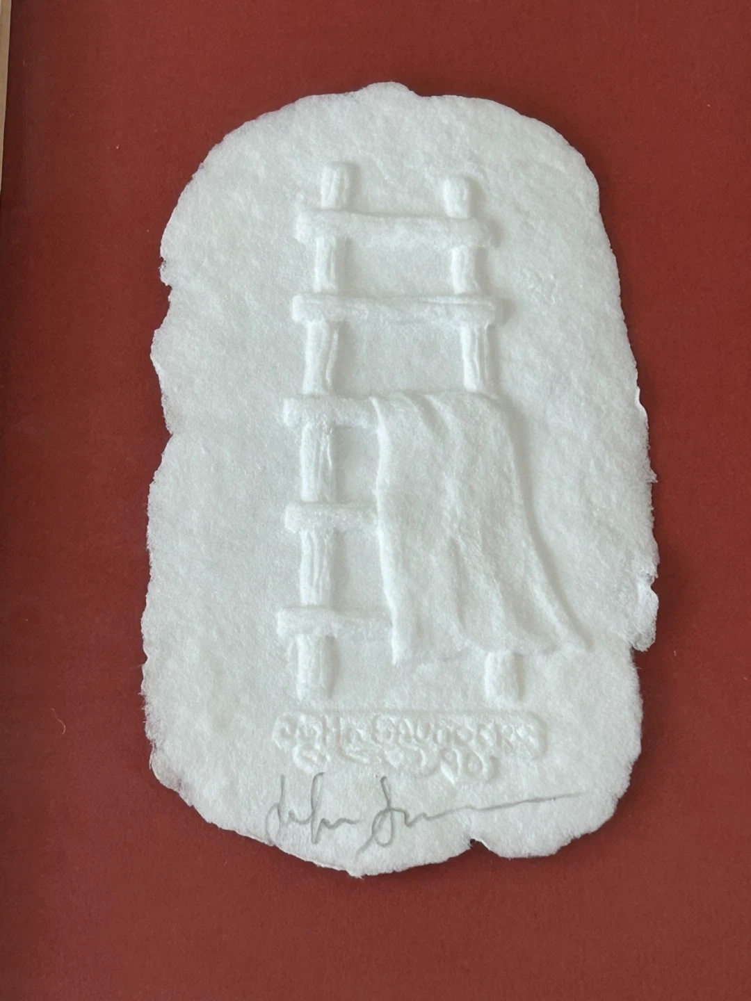 Beautiful signed paper casting titled “The Ladder” by Albuquerque artist John Saunders. This unique artwork is created using a traditional handmade process where 100% cotton rag paper pulp is pressed into a mold taken from a hand-sculpted clay relief.