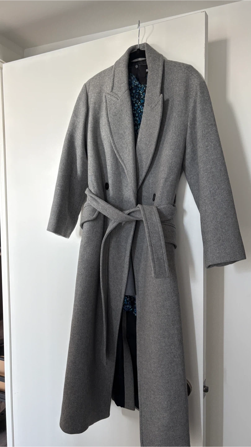 Selling a Zara grey wool blend coat in size S. It has a belted waist and a stylish, classic look. Perfect for keeping warm during the colder months!
