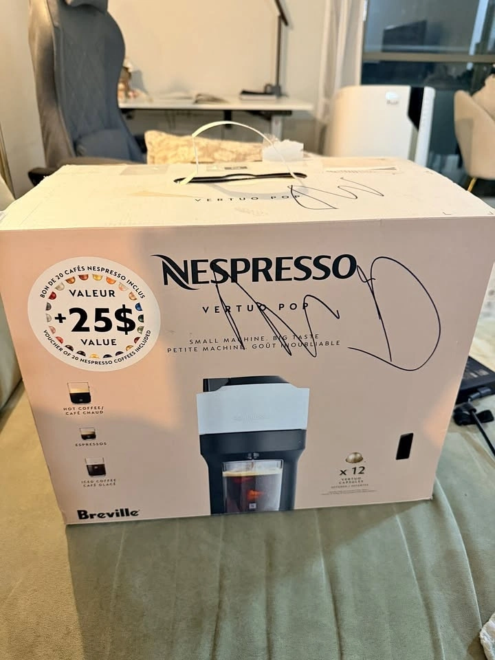 Buy & SellNespresso Vertuo Pop by BrevilleNespresso Vertuo Pop by Breville$90Brand new in box. Compact and stylish espresso machine for your kitchen. Box is slightly damaged.WHERE TO MEETCheck LocationView MapSELLERverifiedVarun KhannaYorkville882 reviews0 chats·0 favorites·22 viewsSEND CHAT TO SELLERHi Varun Khanna! I’m interested in your listing.Hi Varun Khanna! I’m interested in your listing.Get the Karrot app to chatSign In to chat