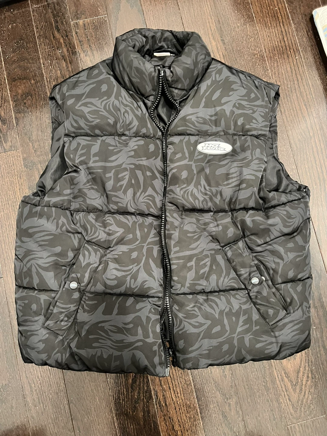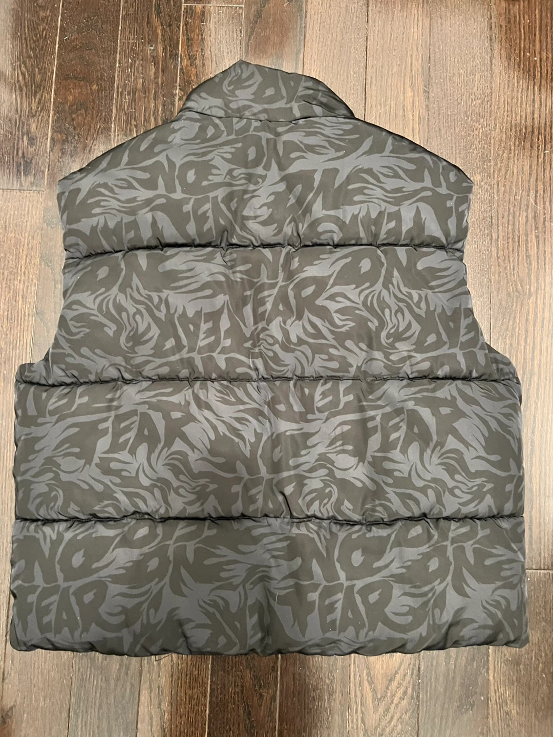 Selling a No Fear puffer vest. It's in great condition and has a cool pattern on it. Perfect for layering! Colour is dark grey with black pattern. Can be unisex but size is men’s.