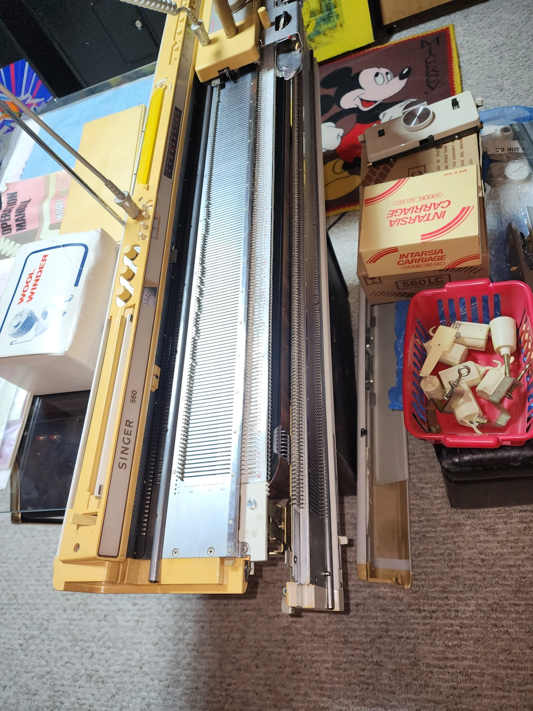 This bundle includes the SINGER 560 Knitter for fine yarns, with the ribber attachment, Intarsia carriage. And a SINGER 155 Knitter for BULKY Knits, Intarsia carriage for the mod. 155, Automatic Linker carriage, Wool Winder, These machines were used by my mother since new and she has kept them in fine condition over the years. ALL cables and cords, and tools are included, Many manuals, pattern books included. All the items are to consuming to individually list. This would be a complete set to produce knitted items in both FINE knit, and in the BULKY knit. Just add Yarn.