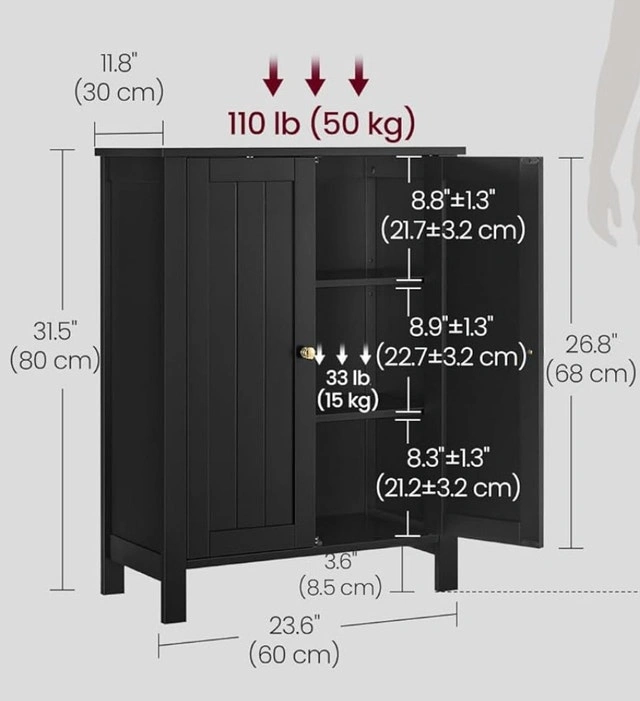 I'm selling a VASAGLE freestanding bathroom floor storage cabinet, offering a blend of functionality and style for your bathroom. This cabinet provides ample storage space while maintaining a sleek appearance. The condition is good, showing minimal signs of wear and tear.