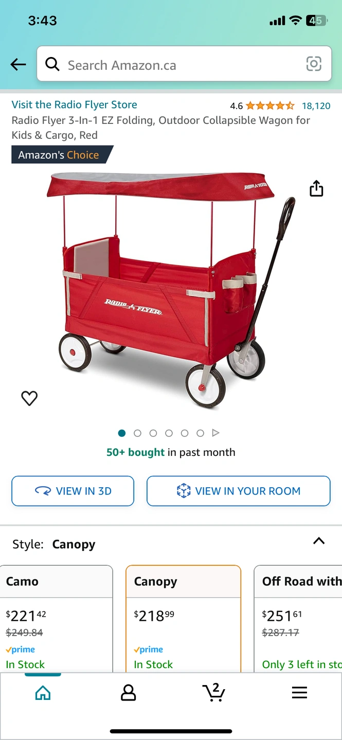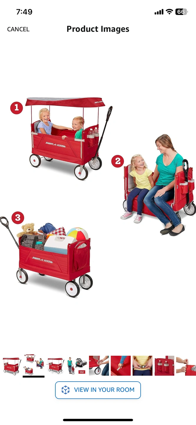 Radio Flyer 3-In-1 EZ Folding Wagon /Red/canopy