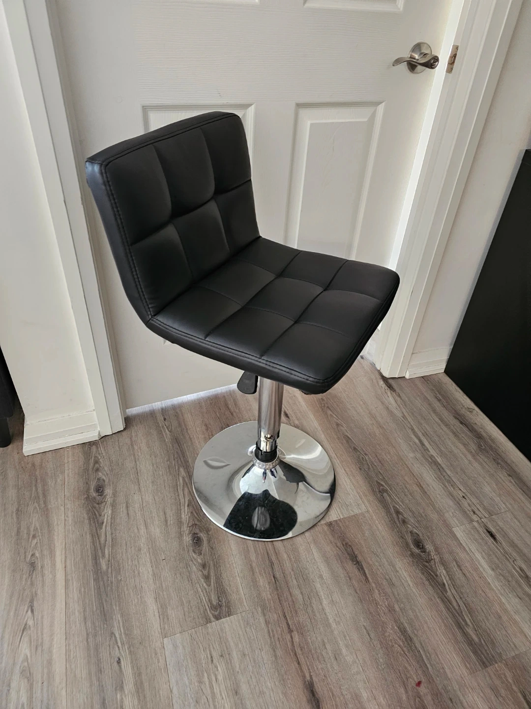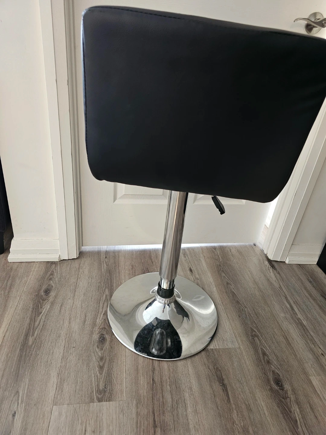 Selling a black bar stool with an adjustable swivel. It's in great condition and would be perfect for a kitchen island or bar area