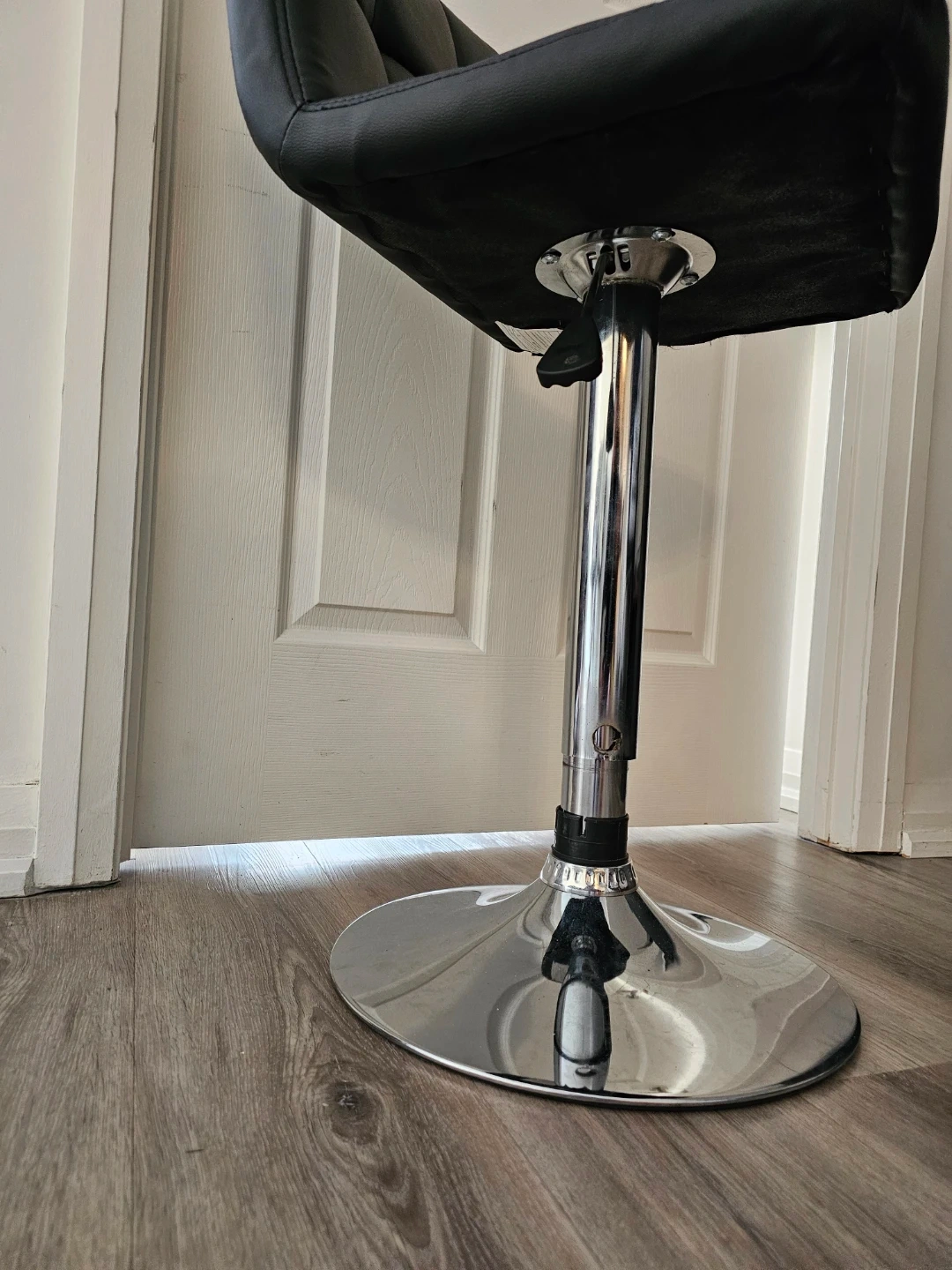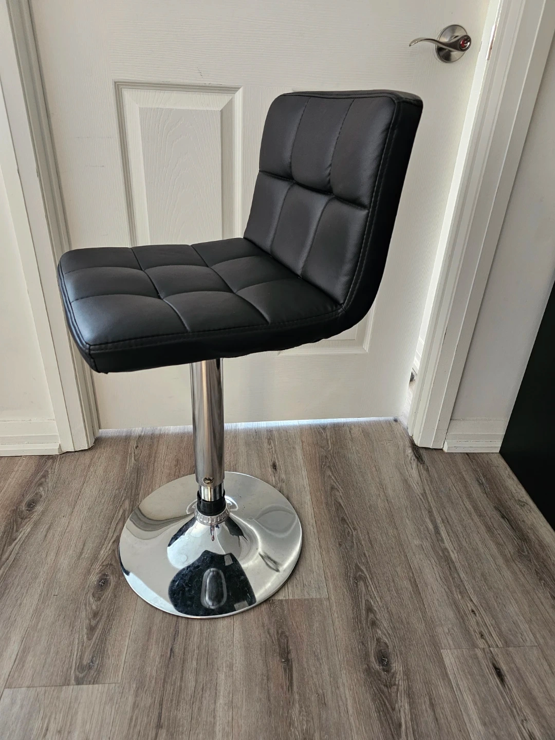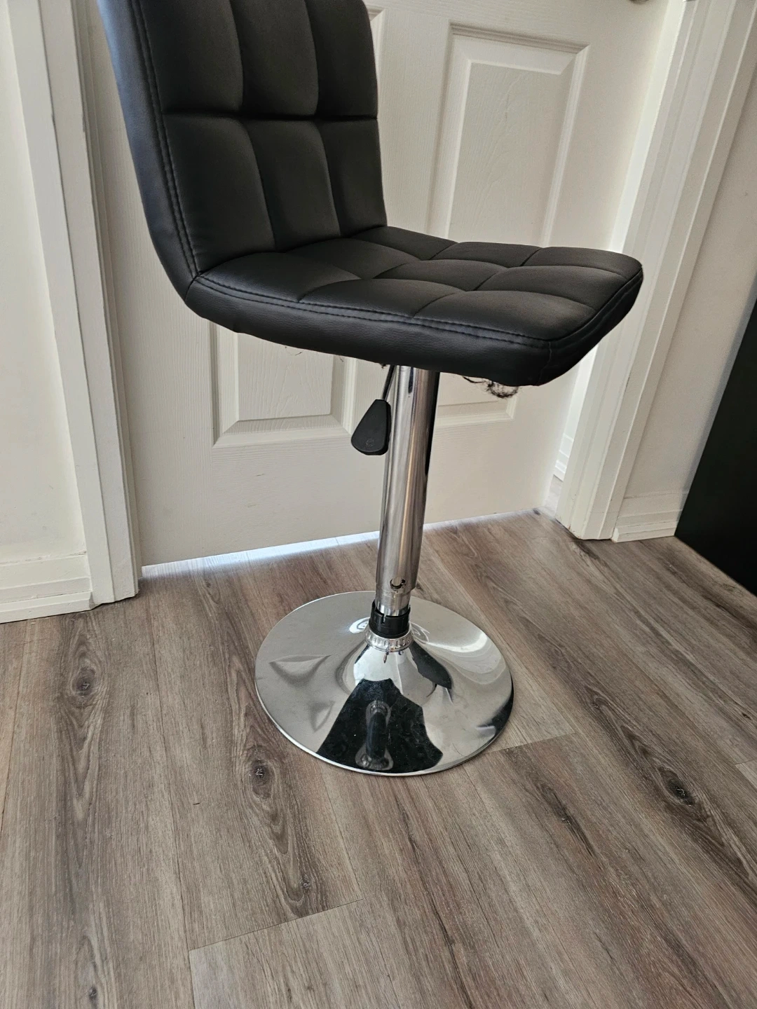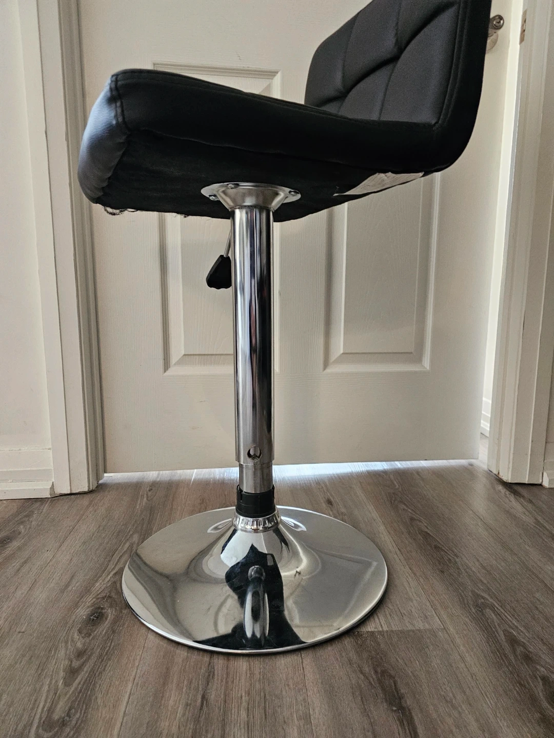Selling a black bar stool with an adjustable swivel. It's in great condition and would be perfect for a kitchen island or bar area