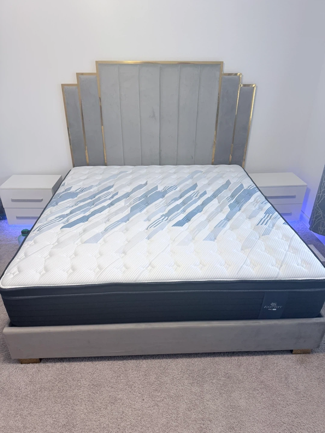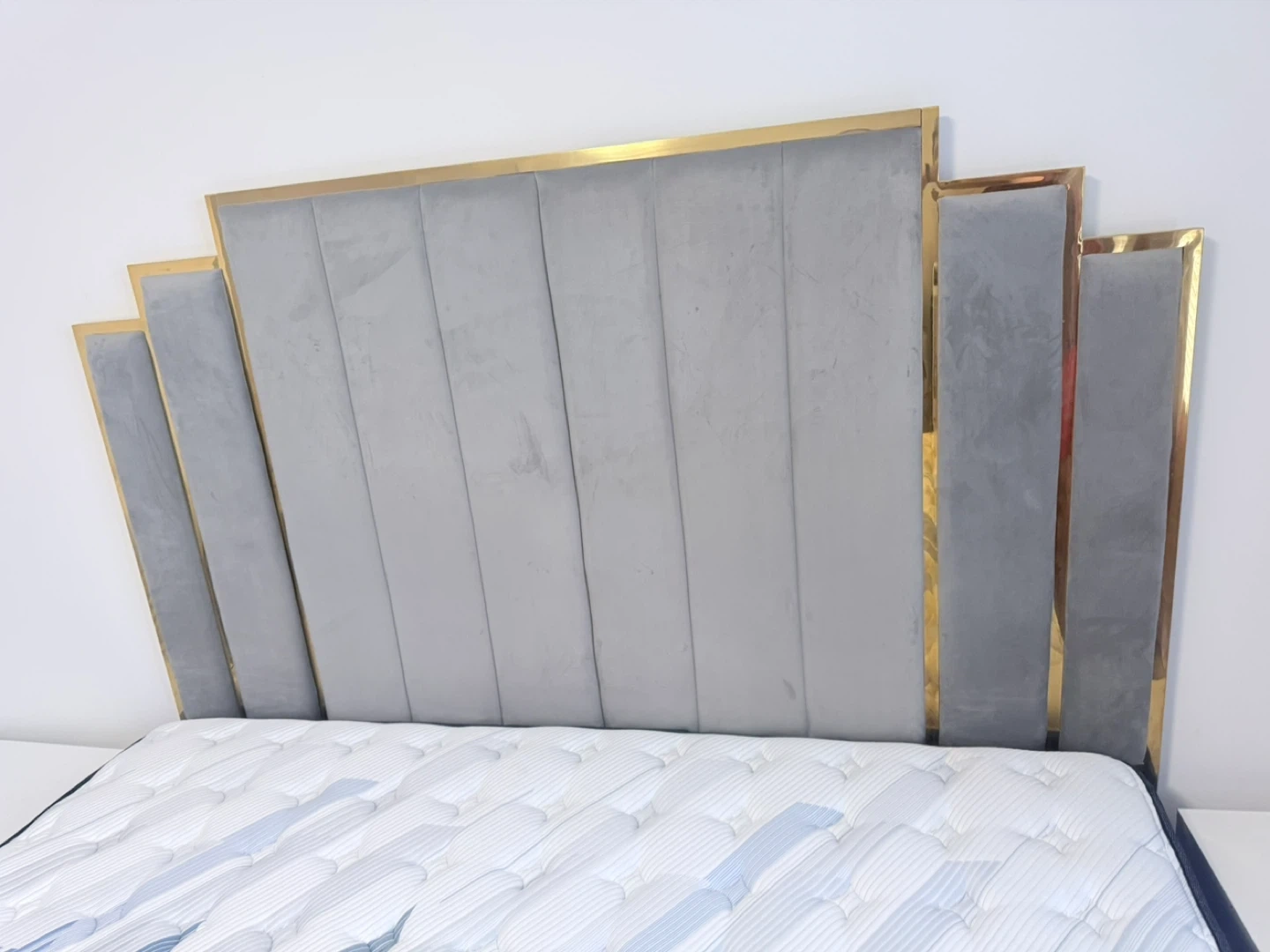 California King Velvet Bed Frame with Gold Accents