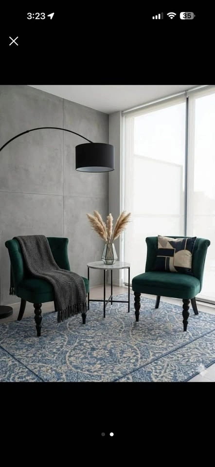 Excellent condition! Good size for small or large living spaces. Velvet accent chairs come in a deep emerald green color. Each chair has a button-tufted backrest and dark espresso-finished turned wood legs. Fabric is soft to the touch and chairs have a sturdy wooden frame.