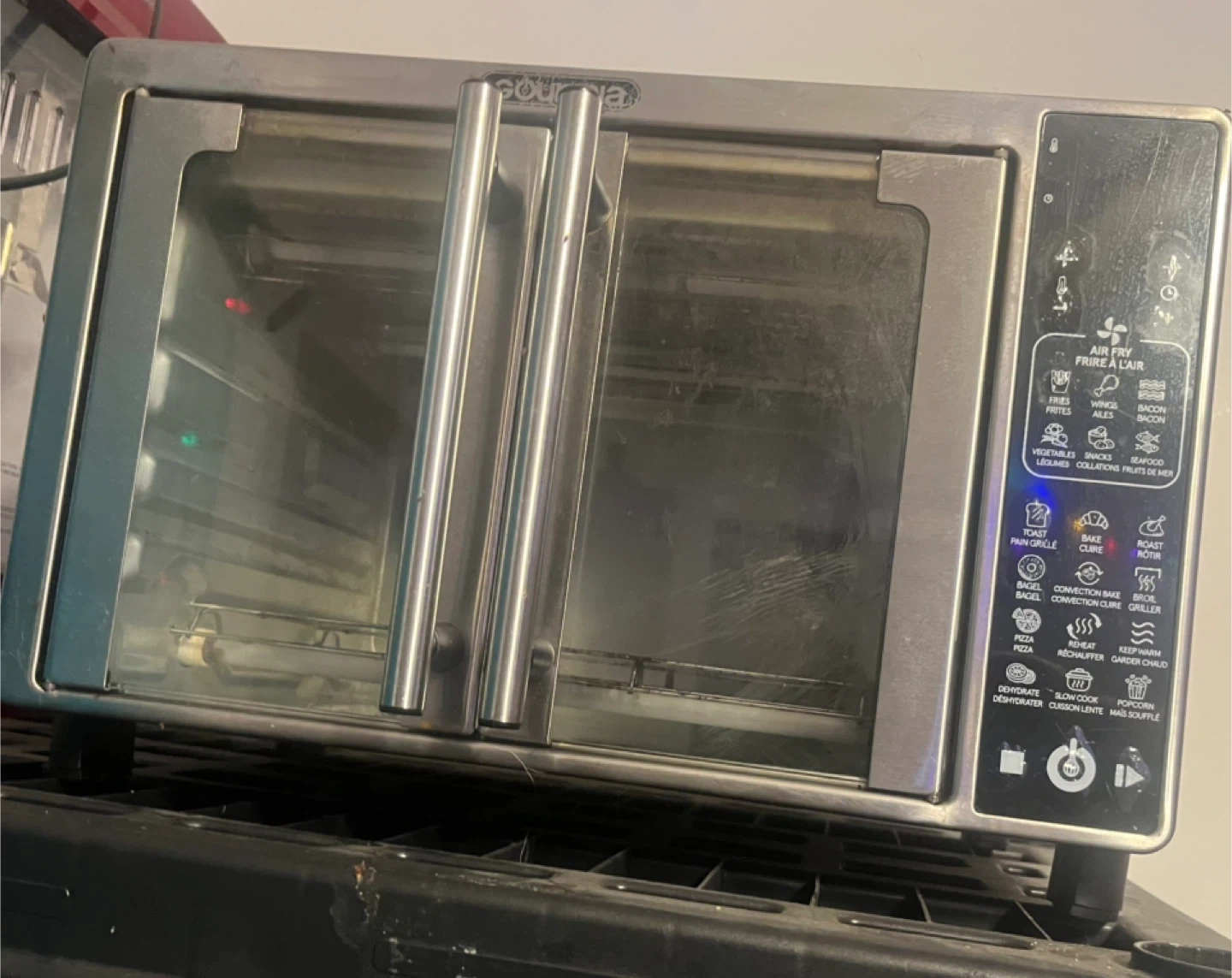 Works great .. we just don’t use anymore .. Gourmia air fryer oven offers multiple cooking functions. It includes air fry, bake, roast, toast, and convection bake settings. The controls indicate it can also dehydrate and slow cook.