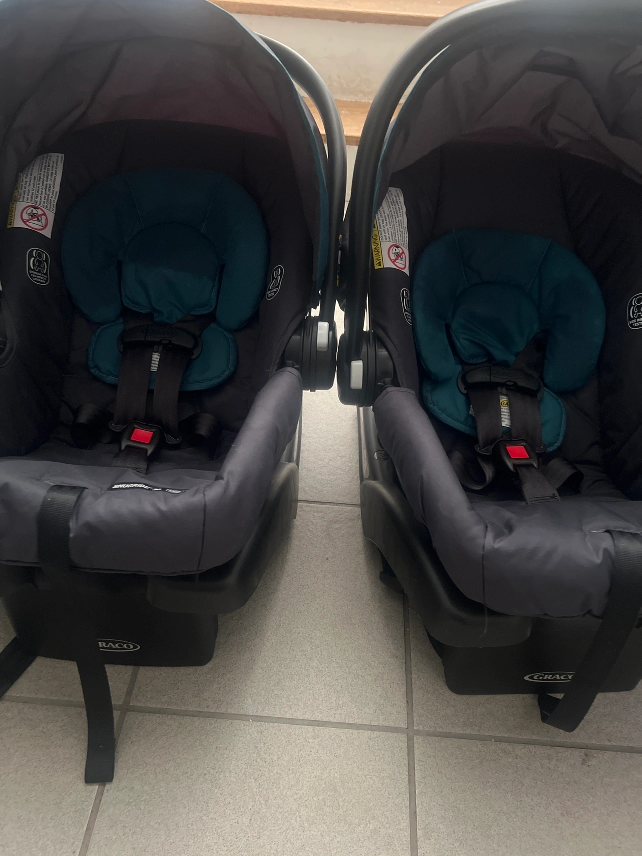 Car seats were used to transport babies home from hospital and for their doctors appointments I do not drive so they are barely used. They retail brand new for 249.99 +tax
