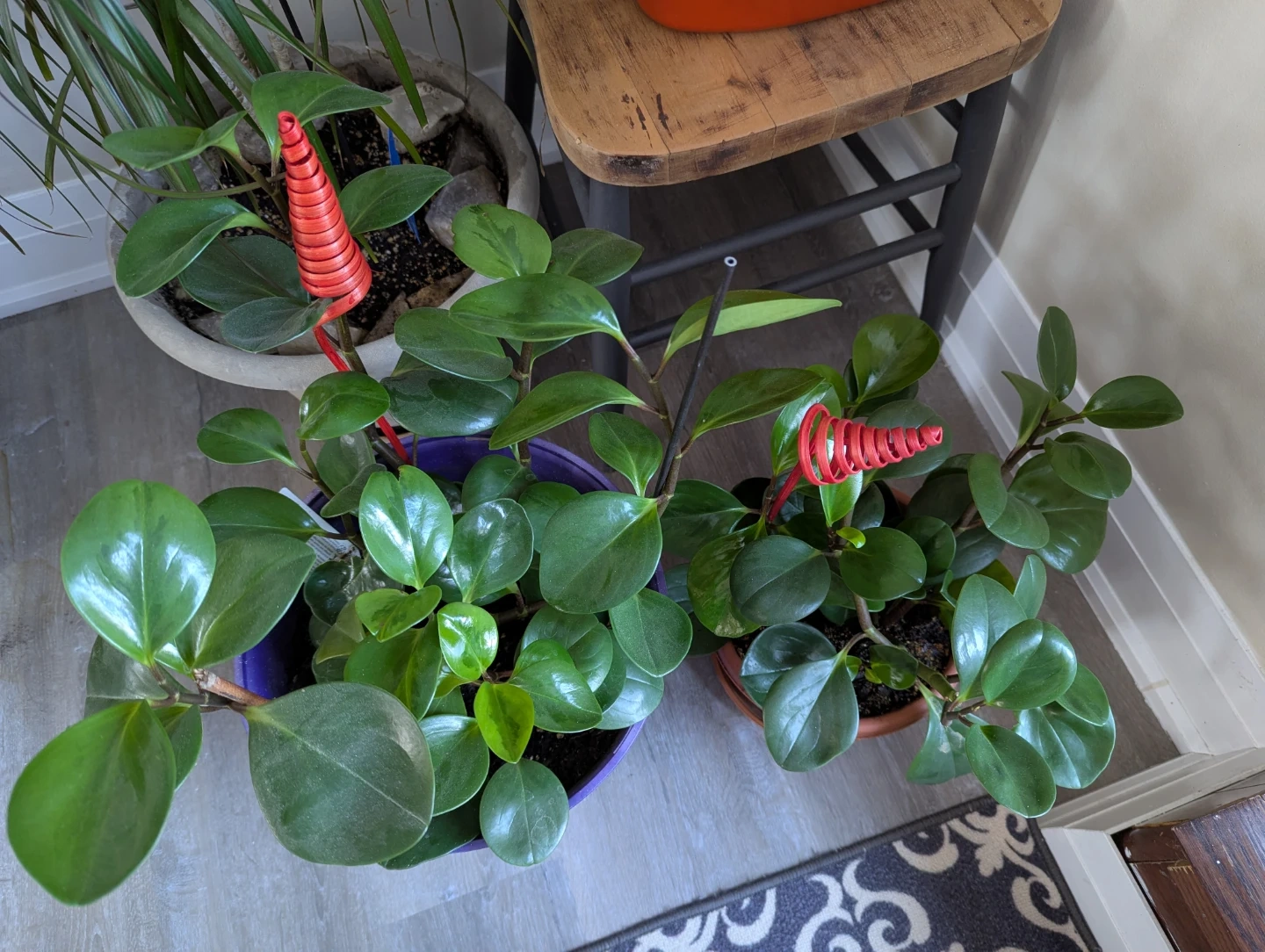 2 Healthy Peperomia plants.