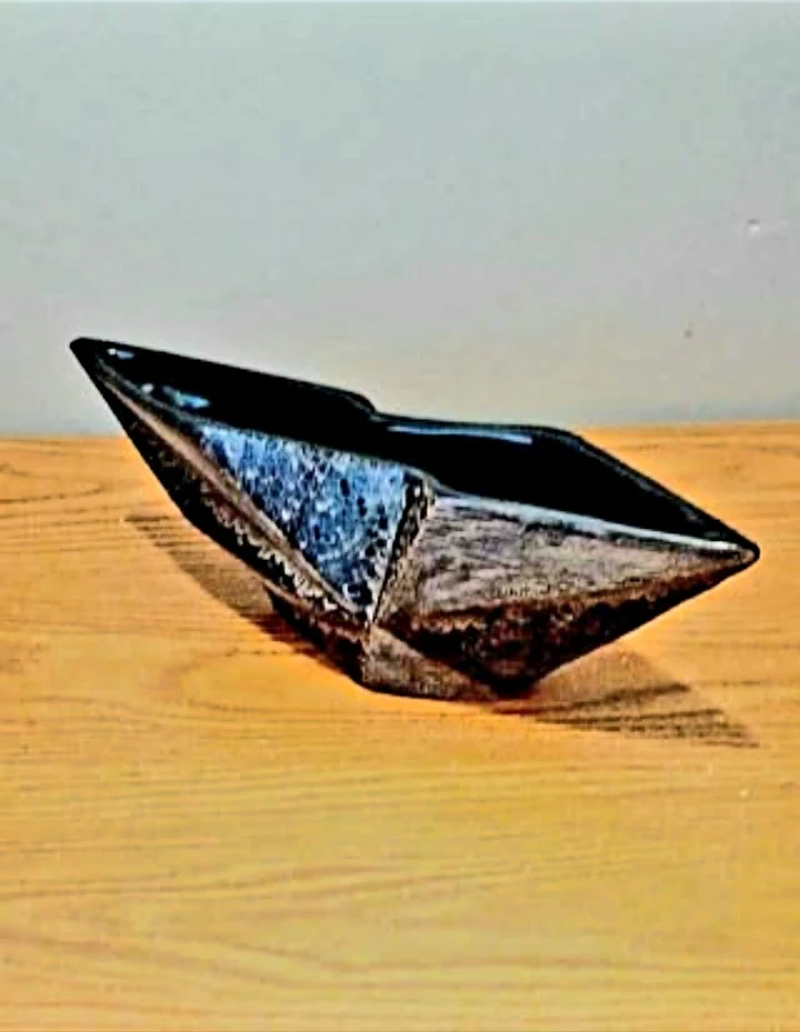 Vintage, Rare Ikebana textured ceramic boat vase with a unique design, Glazed, Leather Shape, watertight vase for Flowers Arrangement