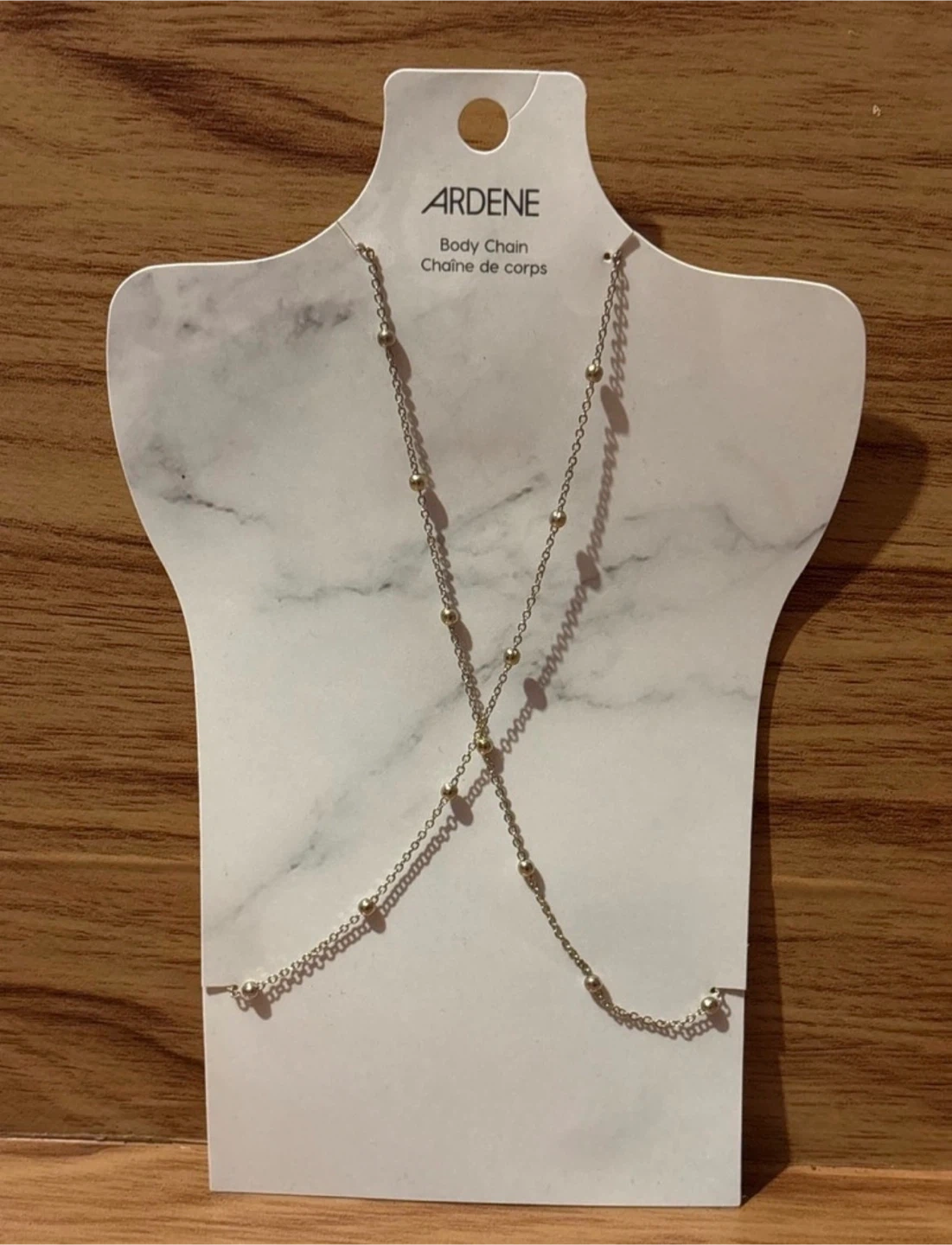 Add a touch of sparkle to your look with this brand new Ardene body chain, a delicate and stylish accessory that's perfect for layering. It's still on its original packaging.