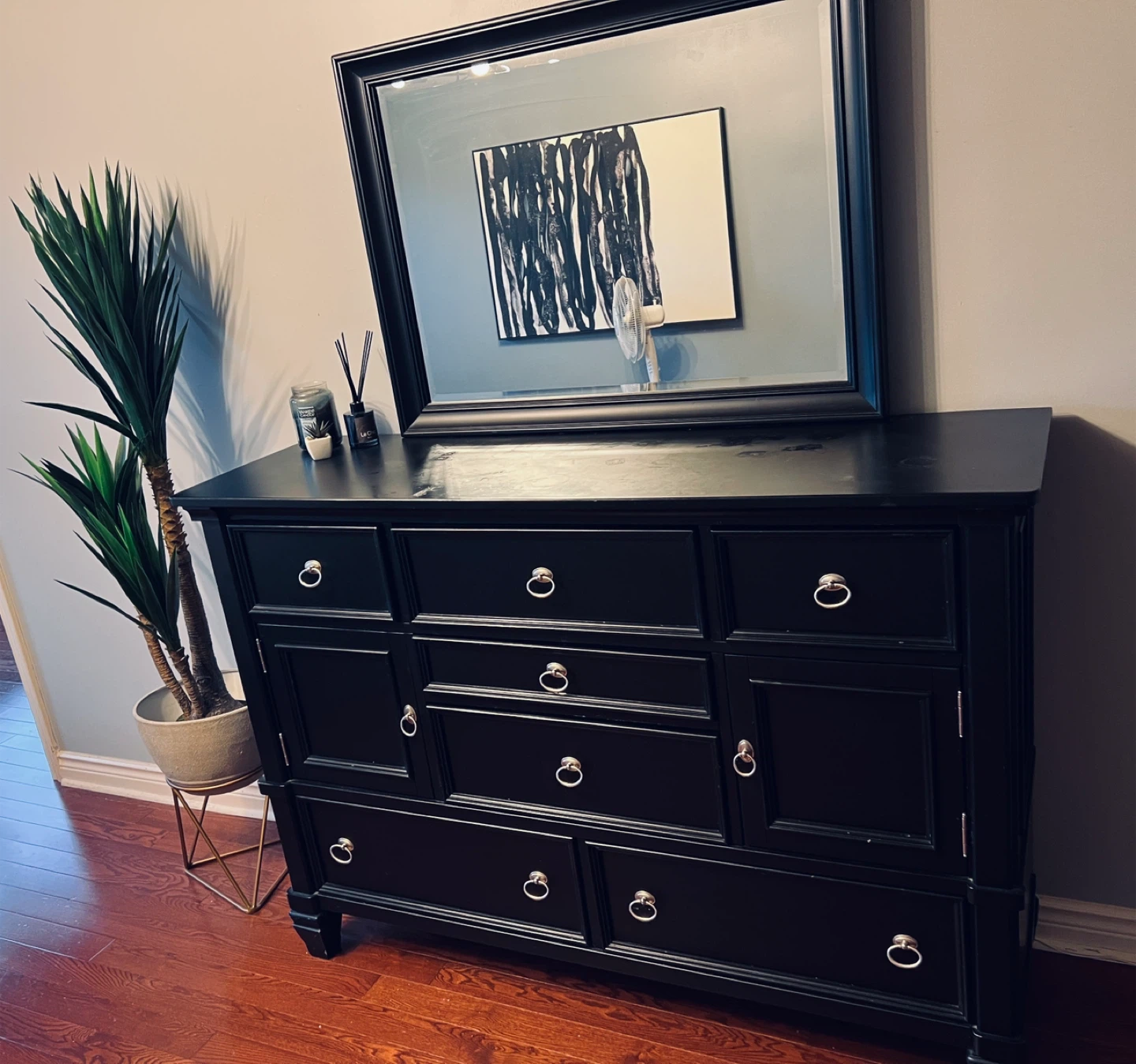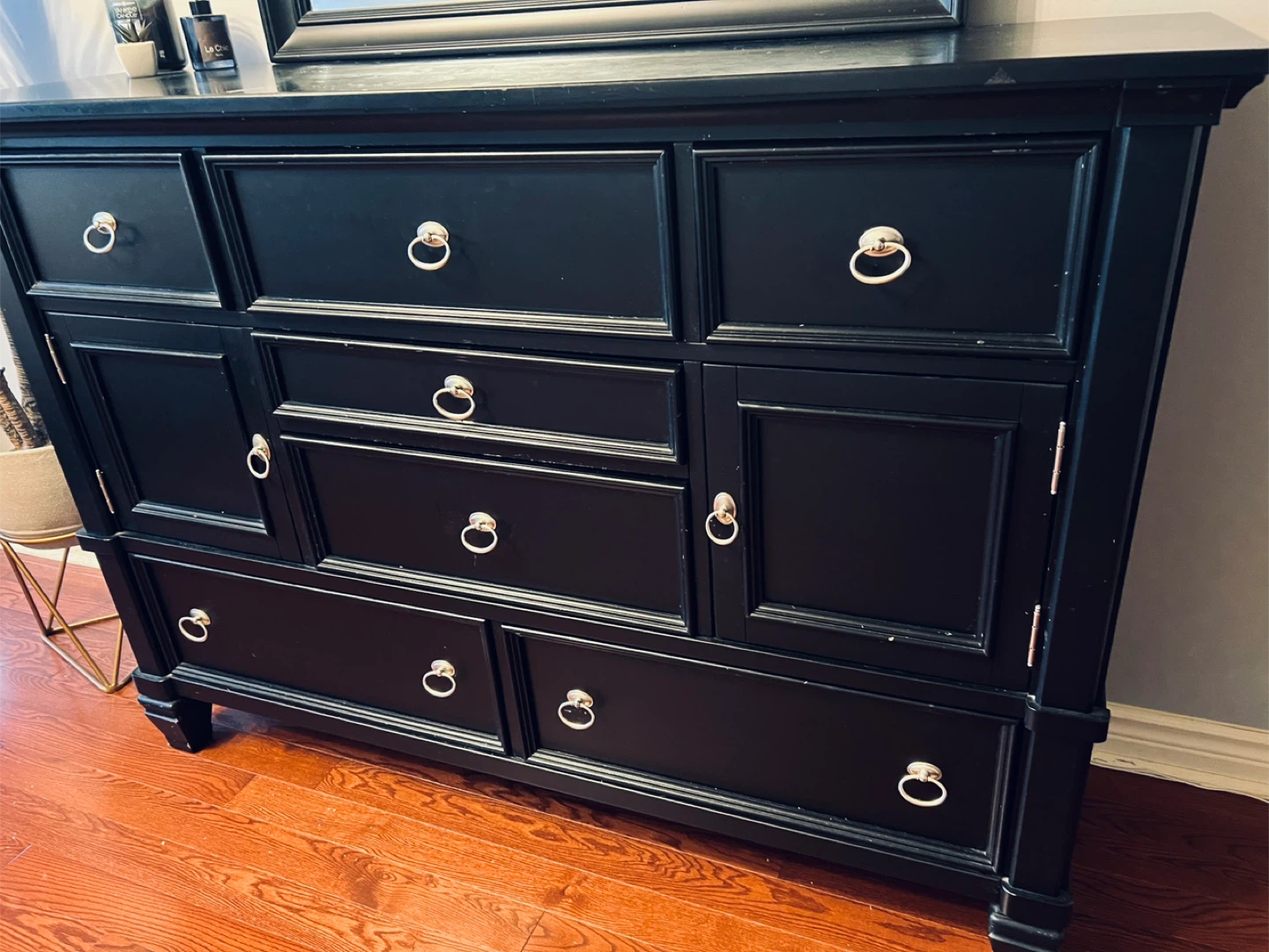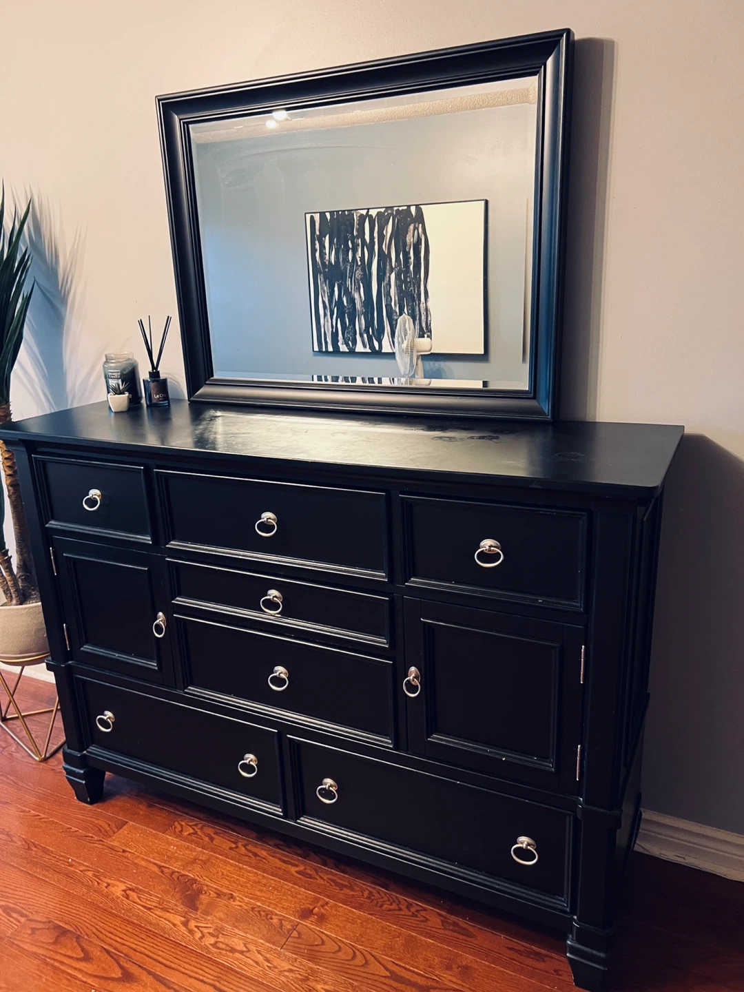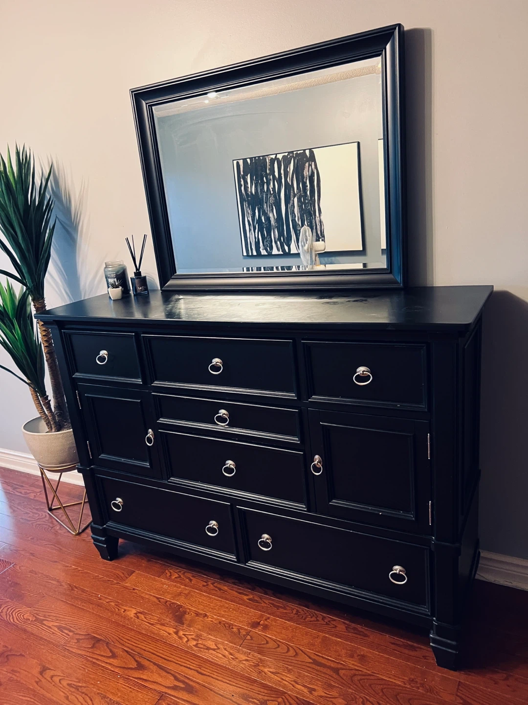 Black solid wood Dresser with Mirror
