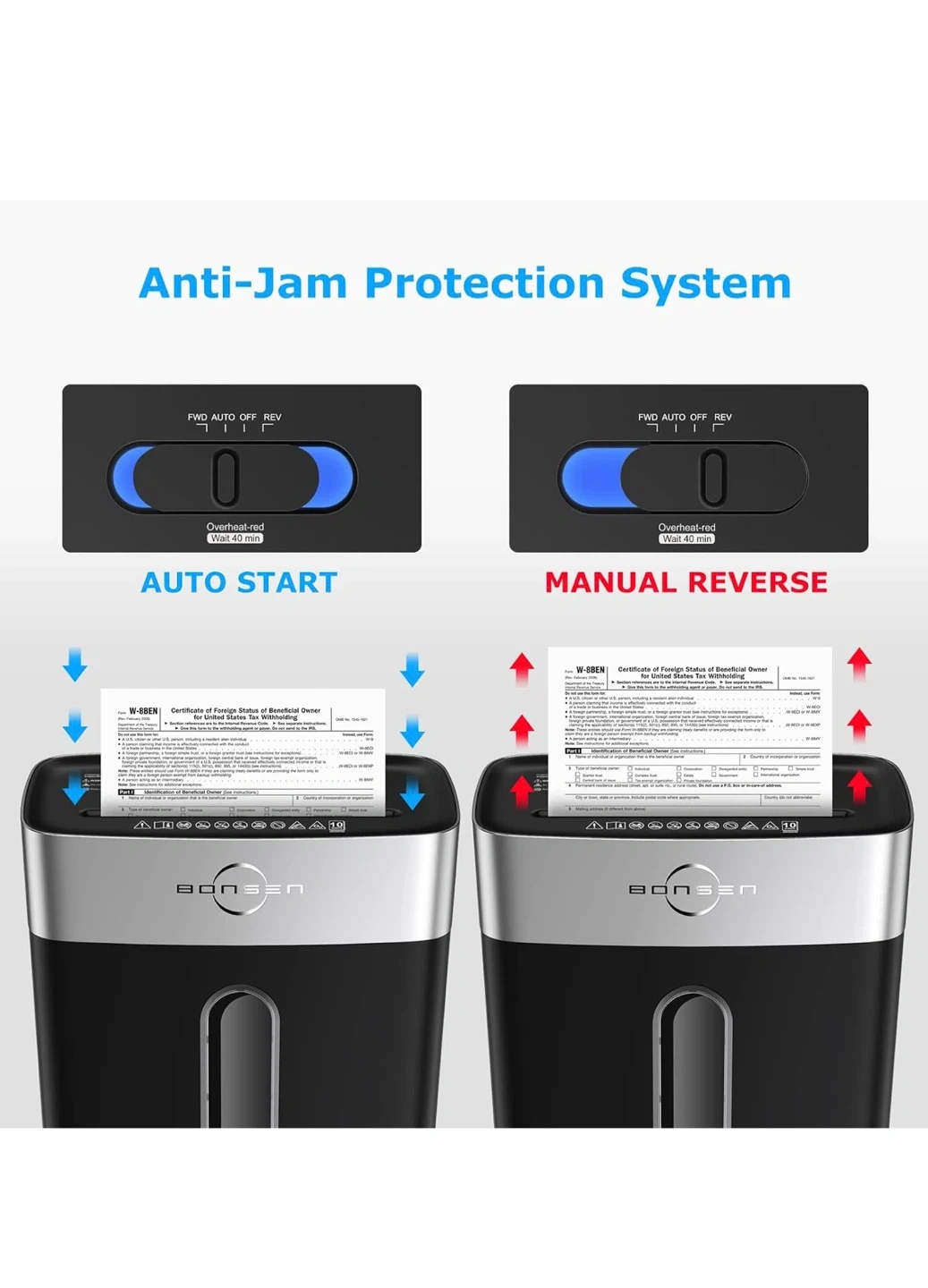 Looking to shred some documents? This BONSEN paper shredder is suitable for home use. It has a 4-gallon bin, so you won't have to empty it too often. It can shred 10 sheets at a time with a high-security level P-4. The blades are made of durable nitrided steel, so it can handle paper, junk mail, credit cards, staples, and clips