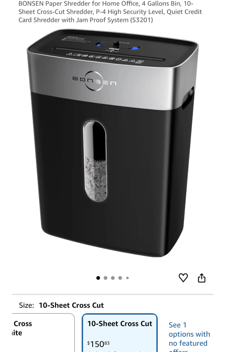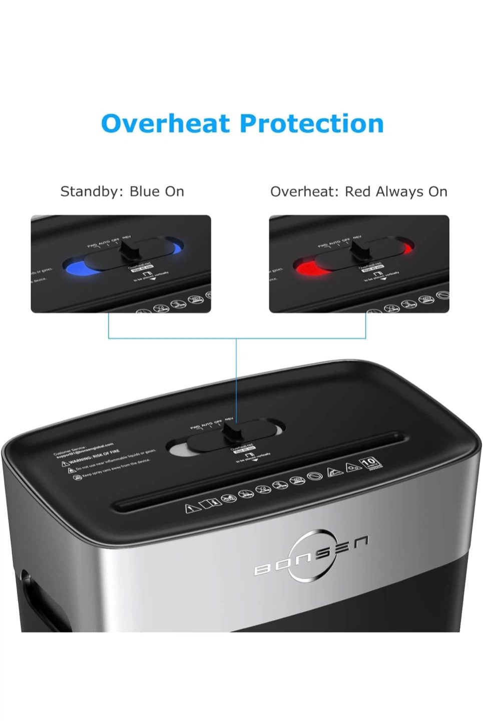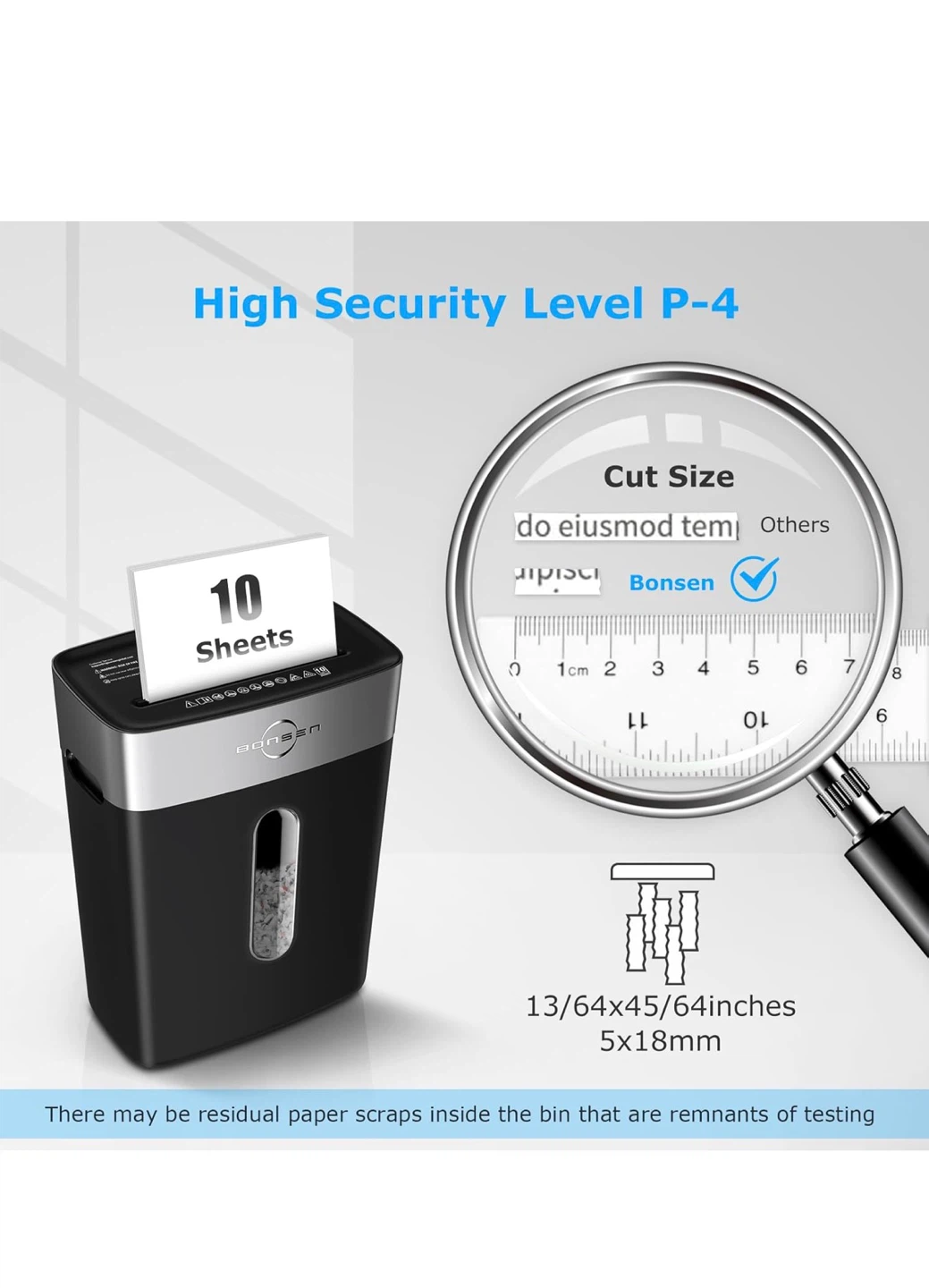 Looking to shred some documents? This BONSEN paper shredder is suitable for home use. It has a 4-gallon bin, so you won't have to empty it too often. It can shred 10 sheets at a time with a high-security level P-4. The blades are made of durable nitrided steel, so it can handle paper, junk mail, credit cards, staples, and clips