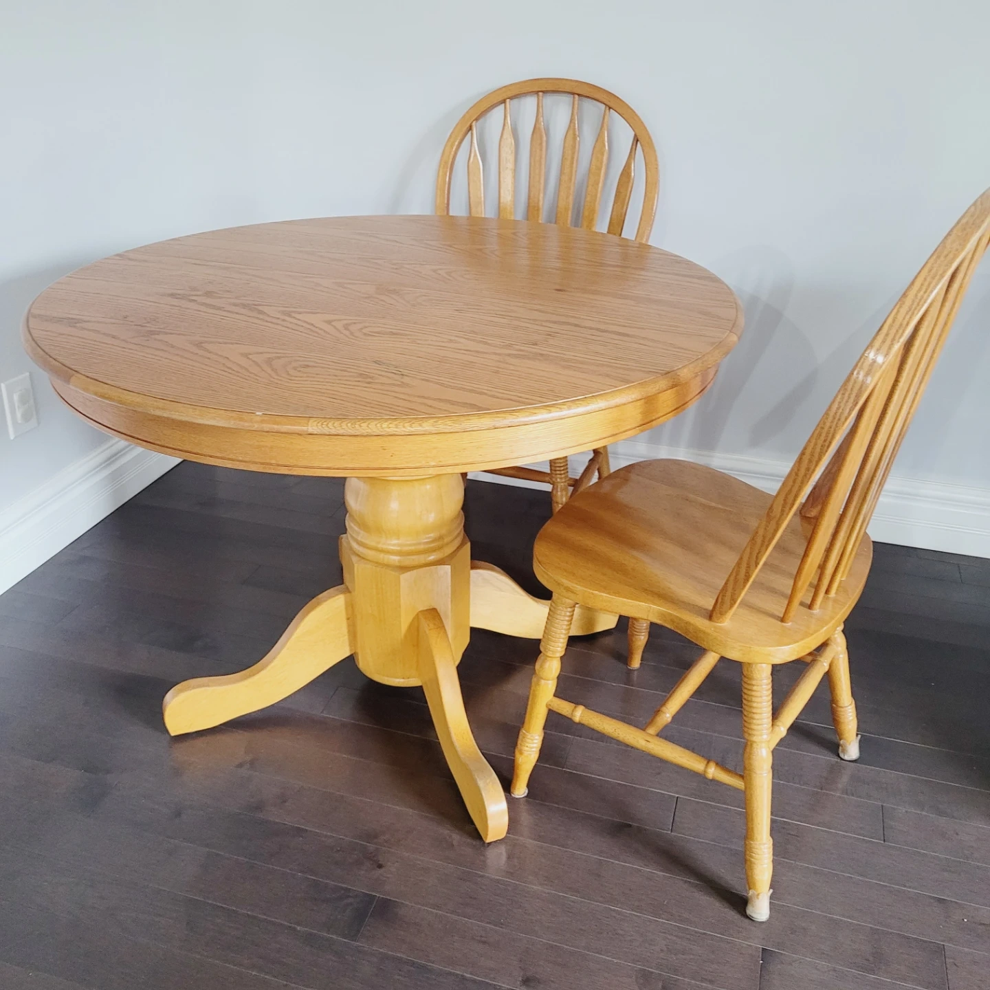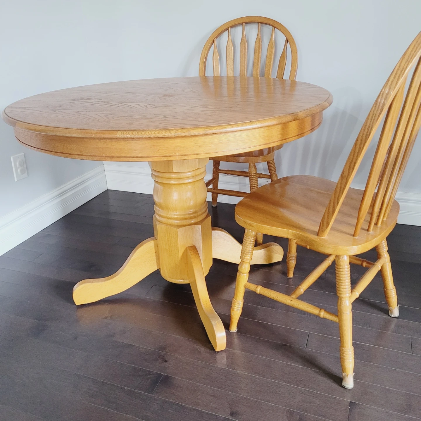 Round Oak Dining Table with 2 Chairs