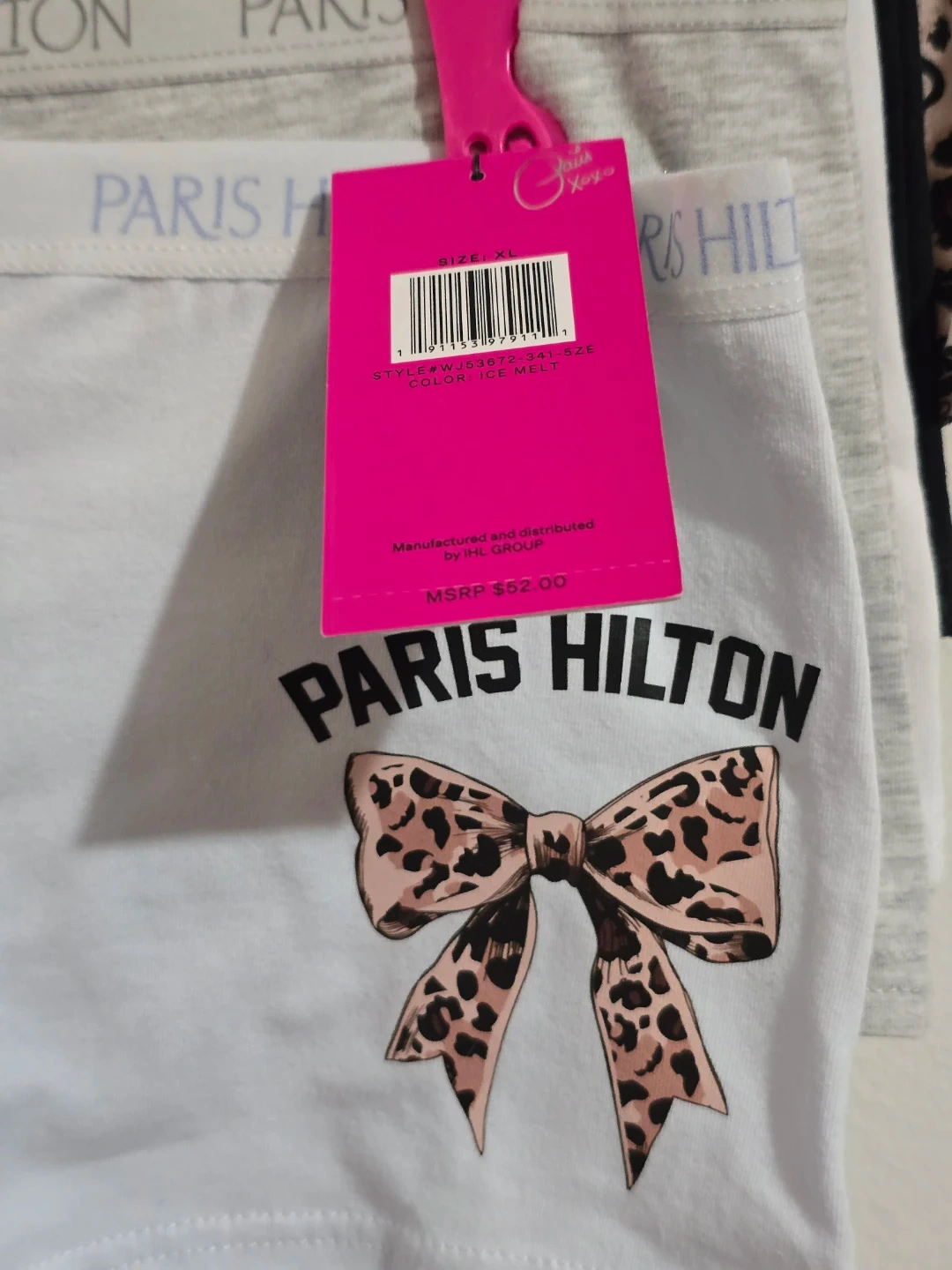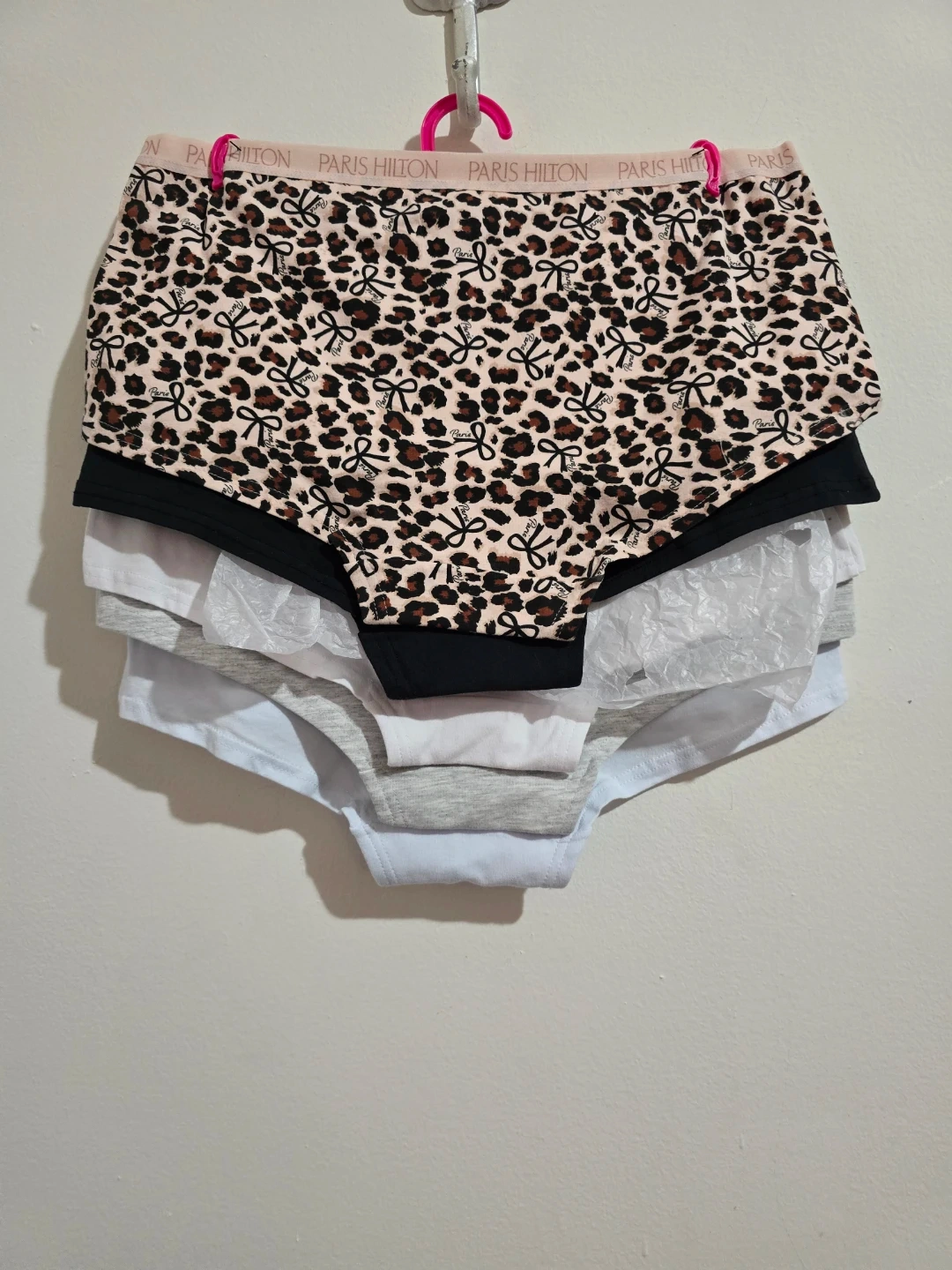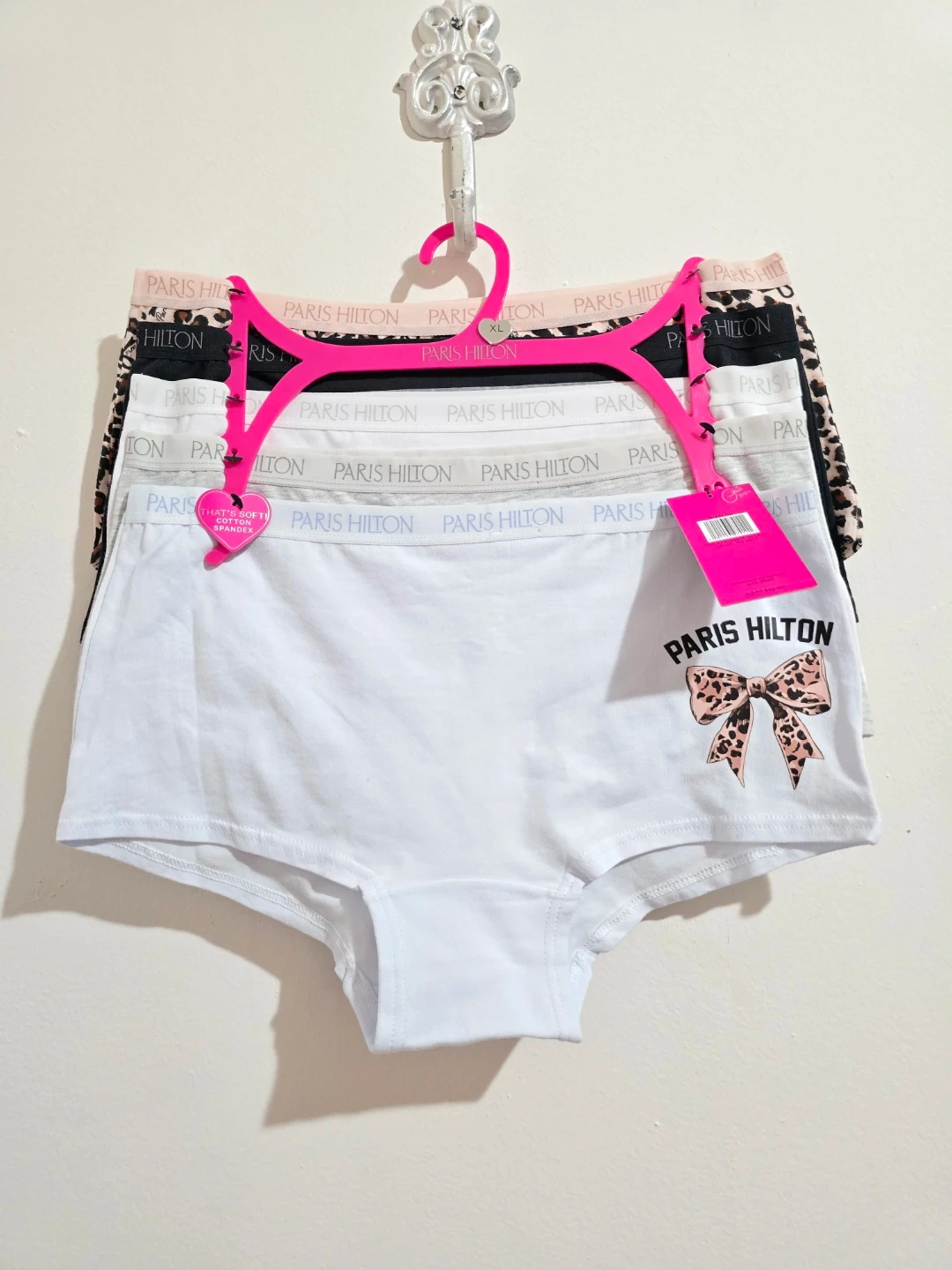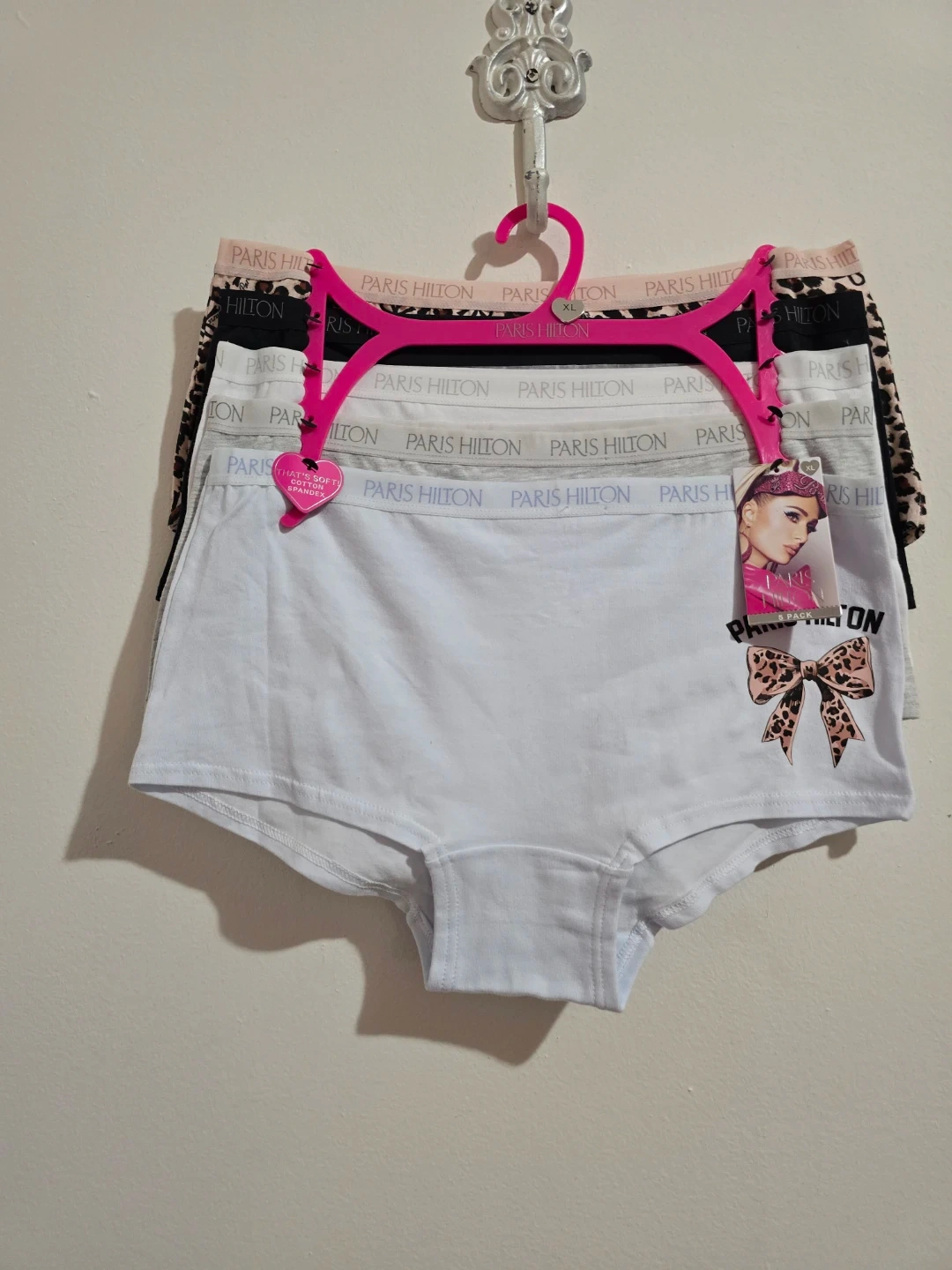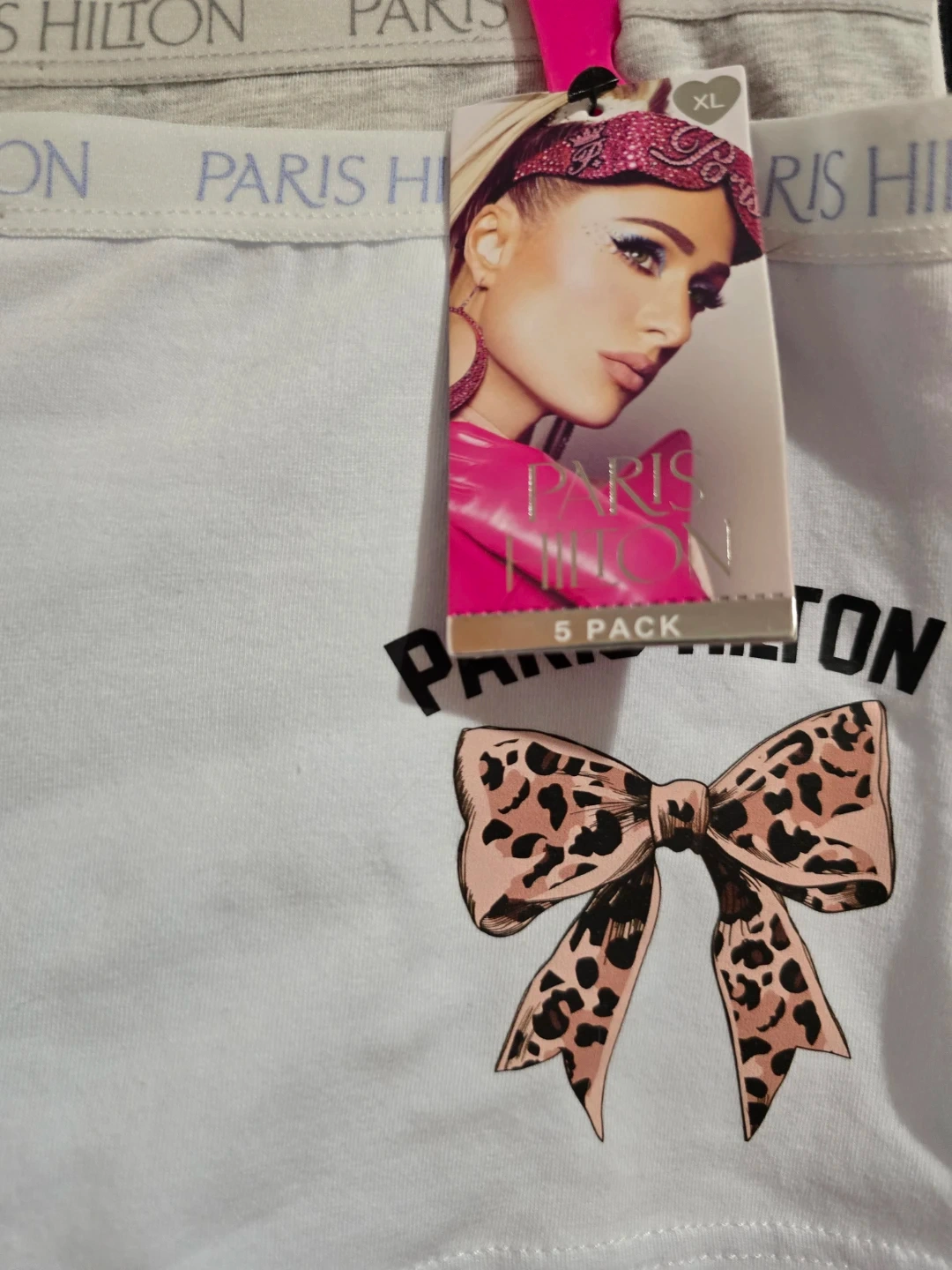 Brand new with tags (NWT). A stylish and soft 5-pack of authentic Paris Hilton panties in size XL. Made with high-quality, breathable cotton for ultimate comfort. This set features a chic variety of colors and a trendy animal print. ​Brand: Paris Hilton. ​Size: XL. ​Quantity: 5-Pack. ​Colors: Light Blue, Grey, White, Black, and a stylish Cheetah Print. ​Material: Soft Cotton Blend. ​Condition: Brand New with Tags (NWT).