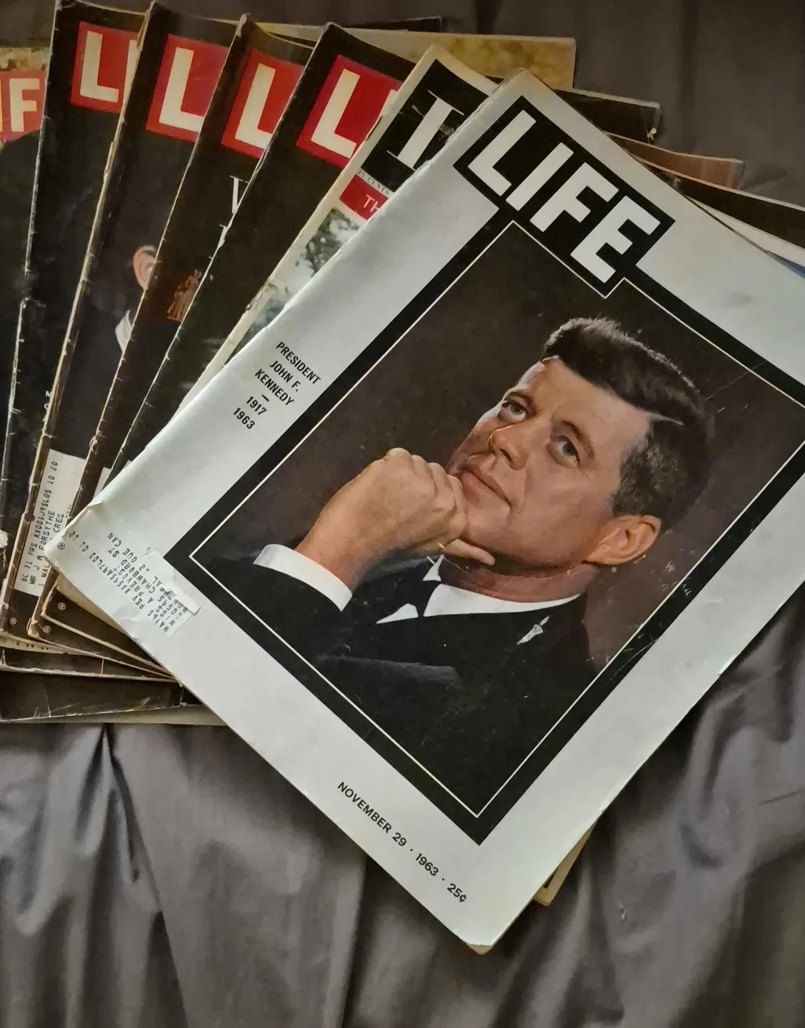 This is a Life magazine from November 29, 1963, featuring President John F. Kennedy. It was published in 1963. The cover price was 25 cents. Selling 8 monthly subscriptions all presidential content.