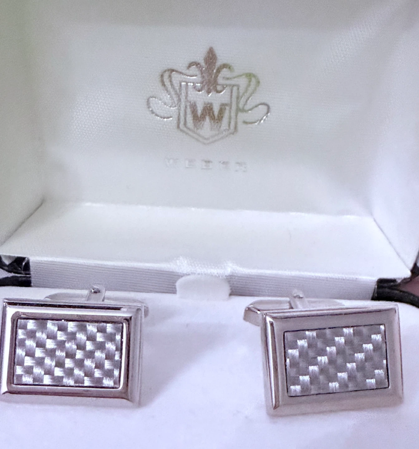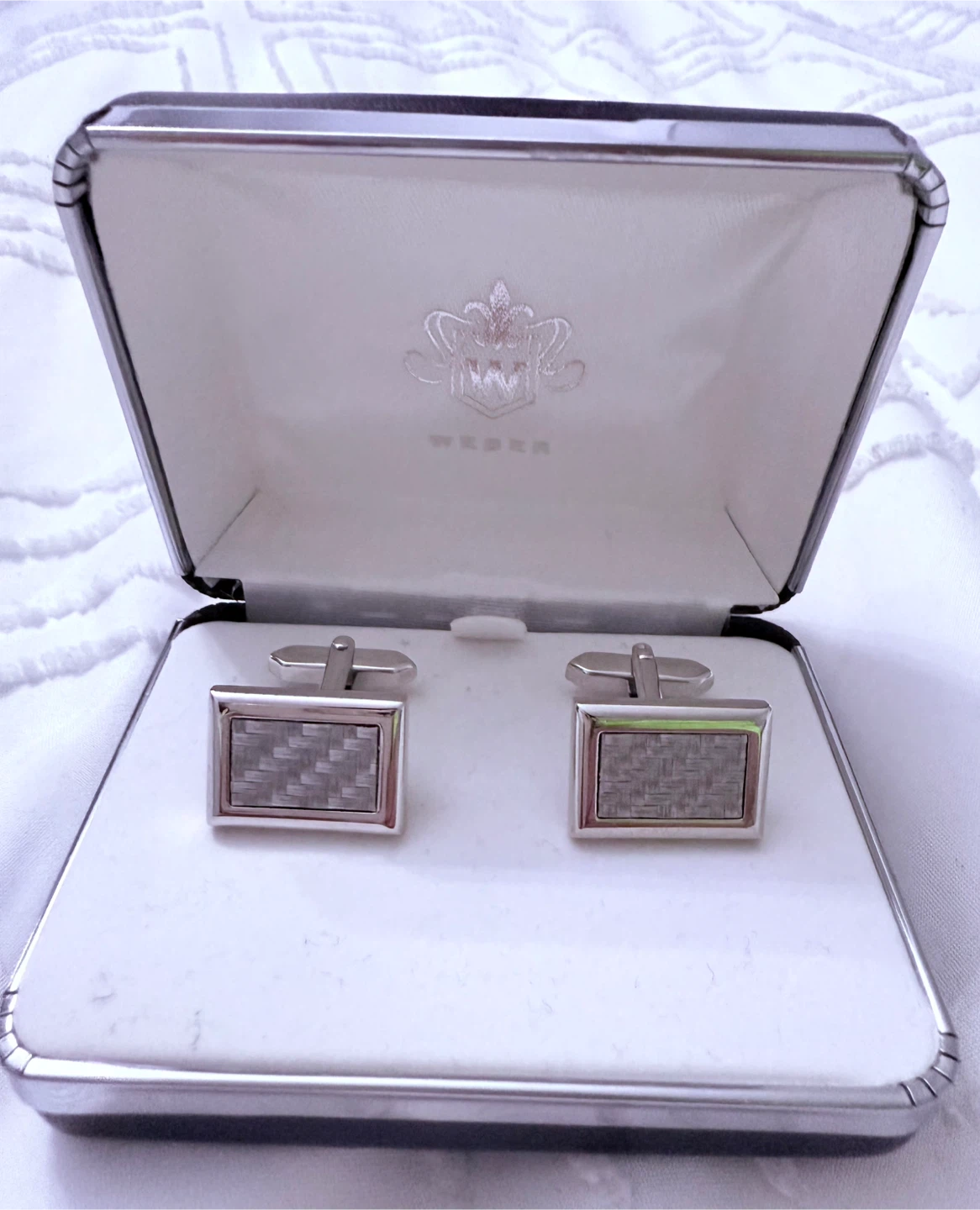 1 / 51 / 5Buy & SellWeber Silver Cufflinks with BoxWeber Silver Cufflinks with Box$25Here are some Weber silver cufflinks. They come in their original box and are in great condition!ConditionLike newSize1”x.5” inchesBrandWeberWHERE TO MEET118 Markville RoadView MapSELLERverifiedMamaKassaUnionville54054 reviews1 chats·0 favorites·13 viewsSEND CHAT TO SELLERHi MamaKassa! I’m interested in your listing.Hi MamaKassa! I’m interested in your listing.Get the Karrot app to chatSign In to chat
