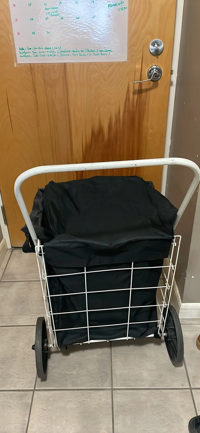Selling a rolling shopping cart with a black liner! It's in good condition and ready to help with your grocery runs or laundry days