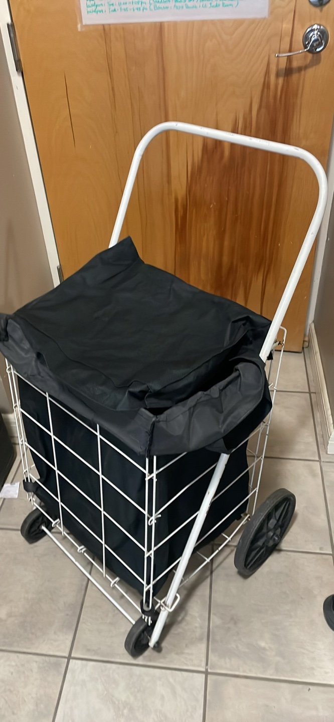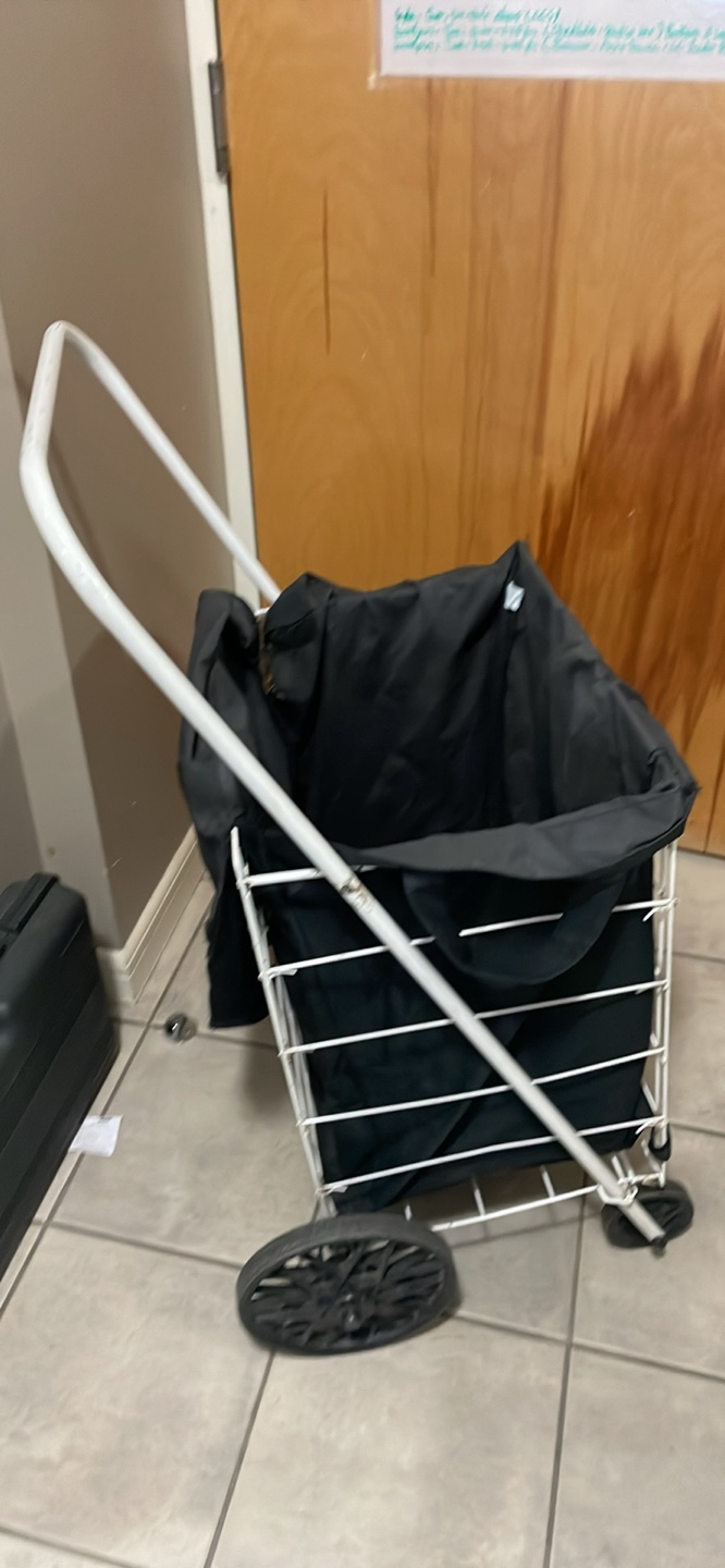 Selling a rolling shopping cart with a black liner! It's in good condition and ready to help with your grocery runs or laundry days