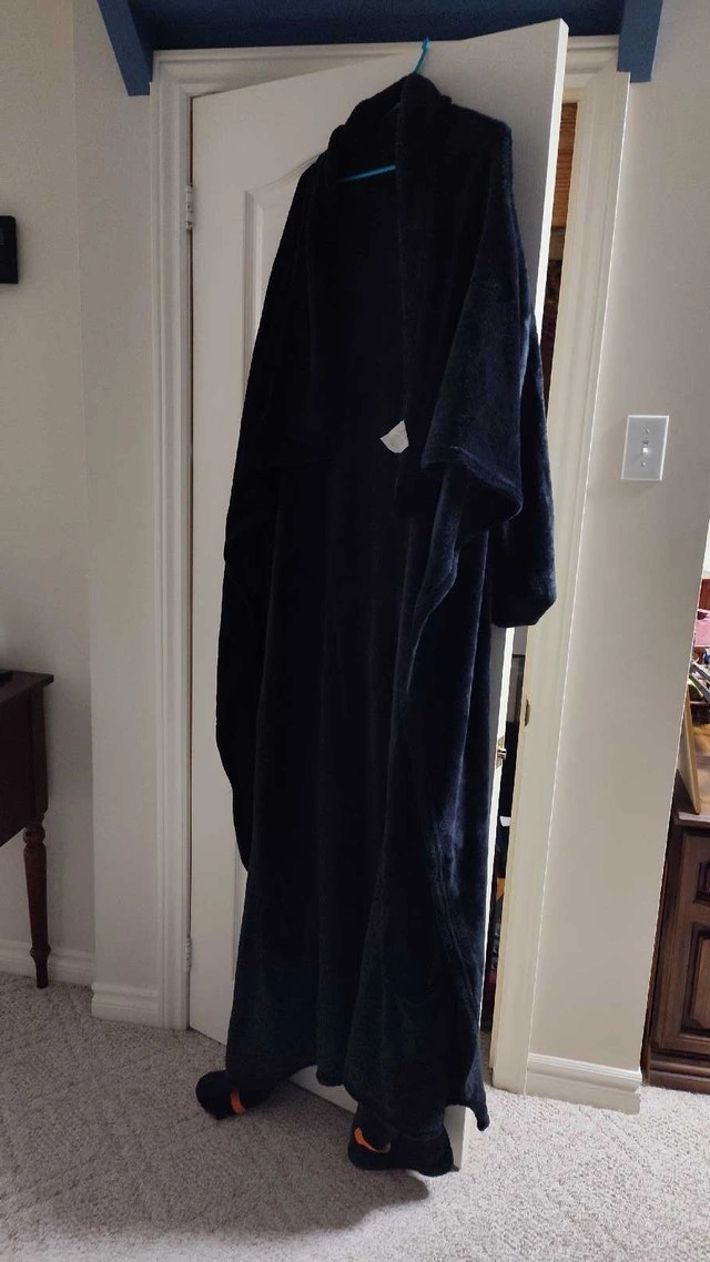 Snuggle up in this ultra-soft plush Sherpa blanket robe, perfect for lounging around the house on chilly evenings or mornings. It is used, but it is in excellent condition, ready to bring warmth and comfort to your daily routine. It has Velcro clasps and your legs can fit into the lower sleeves also if preferred. The robe is waiting for you to give it a new home. If the ad is up, the robe is still available. Located in the Britannia Rd and Ninth Line area.