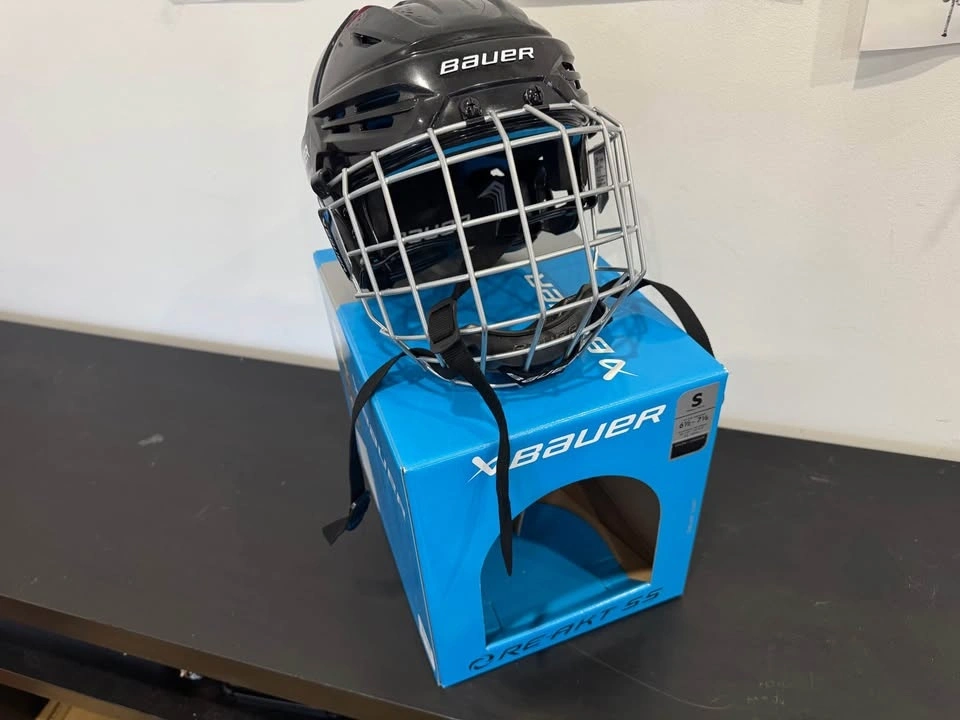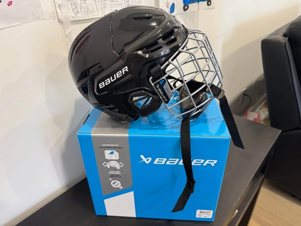 Classic style meets reliable comfort. The BAUER RE-AKT 55 helmet features dual-density foam for a secure, consistent fit every game. Ventilation ports, floating ear loops, Monolock Adjustment System, Dual Density Foam. Comes with Facemask. Barely used. Selling since my son doesn't want to ice skate. Also selling Bauer Ice Skates Size 6. See my other listings.