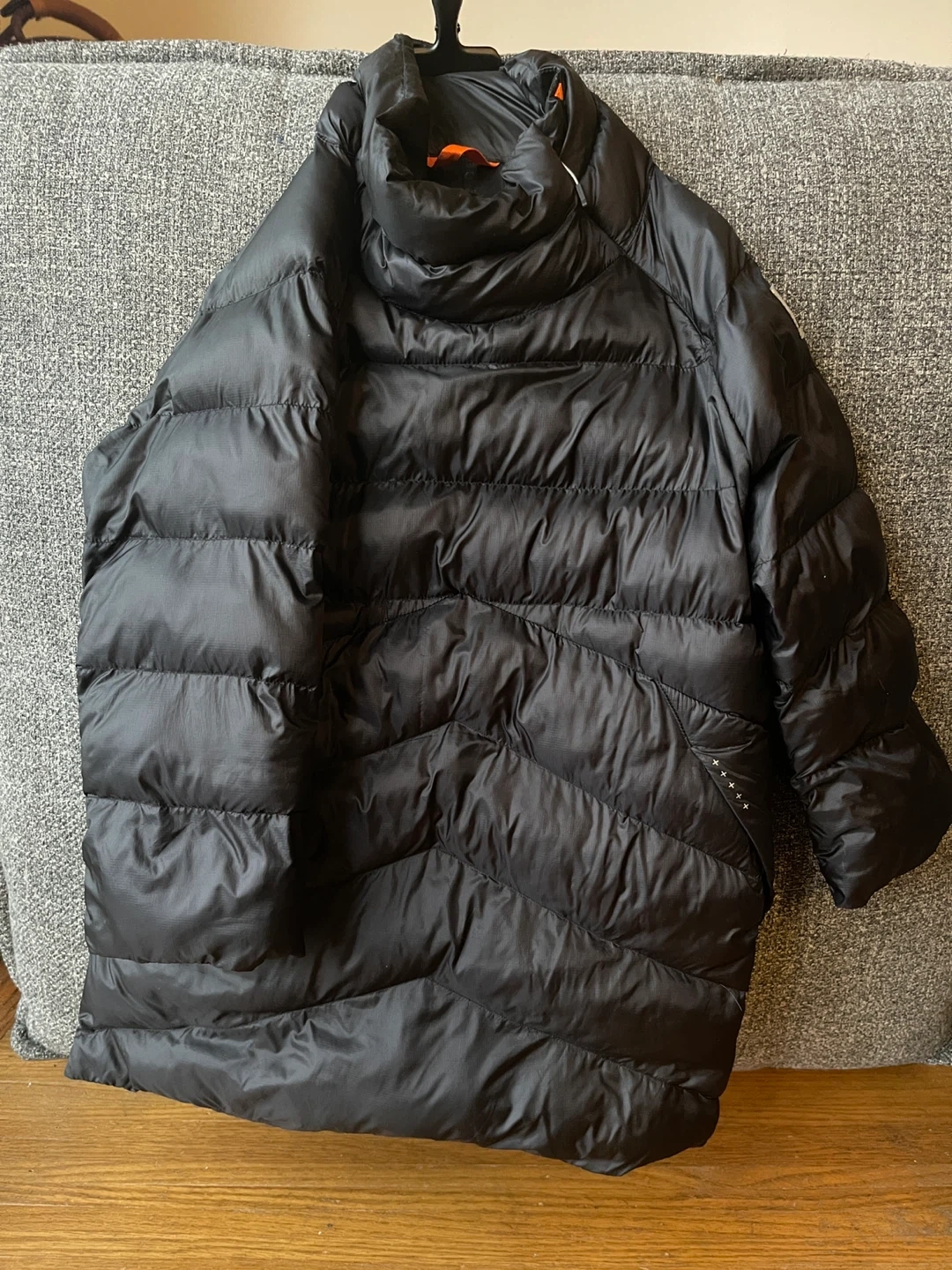Selling a gently used Orage black puffer jacket. It's in great condition and perfect for staying warm during the colder months! The jacket is a size small. The sleeves end just below the elbows.
