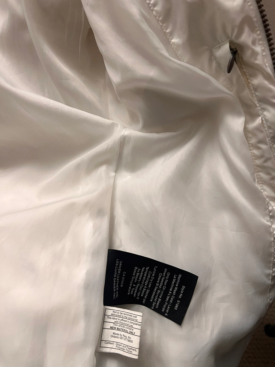 Here's a Danier puffer jacket in a lovely white colour! It's a size XS. Perfect for staying warm and stylish during the colder months.