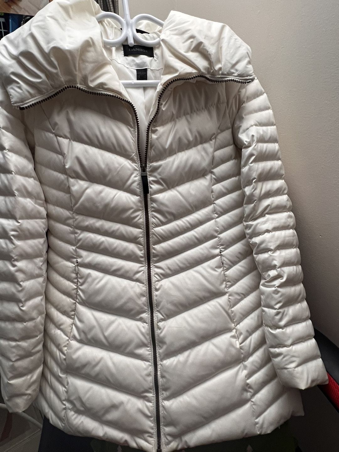 Here's a Danier puffer jacket in a lovely white colour! It's a size XS. Perfect for staying warm and stylish during the colder months.