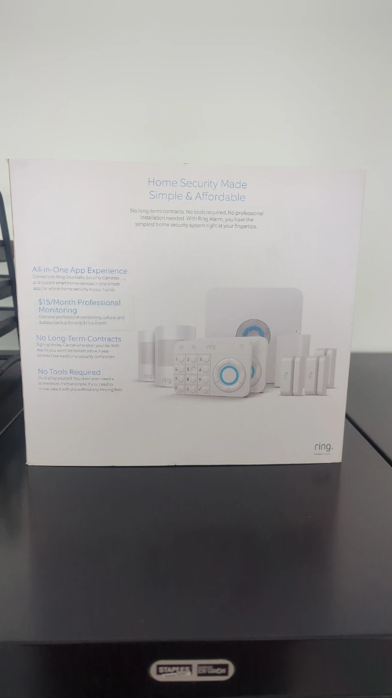 Ring Alarm home security system. Includes 1 Base Station, 2 Keypads, 2 Motion Detectors, 3 Contact Sensors, and 1 Range Extender. Whole-home security made simple and affordable. It's easy to install and customize. Perfect for keeping your home safe!